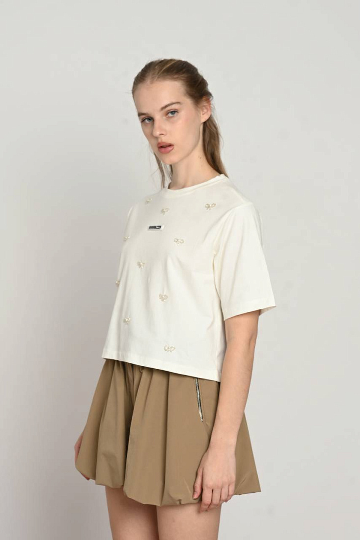 Футболка экрю с бантиками из бисера для девочки — это стильная деталь гардероба, способная подчеркнуть индивидуальность и добавить легкости в образ ребенка. Модель выполнена из мягкой приятной ткани, которая обеспечивает комфорт и свободу движений в течение всего дня. Особое внимание в дизайне уделено бантикам из бисера — они придают изделию изысканное и аккуратное оформление, делая его более нарядным и привлекательным для девочки.Футболка подходит для повседневного ношения, посещения детских мероприятий или прогулок. Цвет экрю считается универсальным и легко сочетается с различными брюками, юбками и шортами, что позволяет создавать разнообразные комбинации. Декор в виде бантиков из бисера не только украшает, но и выделяет изделие среди обычных моделей. Изделие создано специально для девочки, отлично садится по фигуре и не вызывает дискомфорта.Тщательно подобранные детали и аккуратные швы делают эту футболку приятной в носке и долговечной даже при частых стирках.
