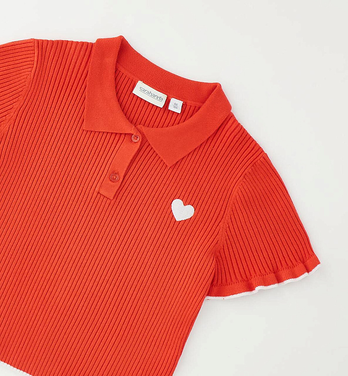 Футболка для девочек Sarabanda из вискозного трикотажа. Застежка на пуговицы, вышивка в виде сердечек.
