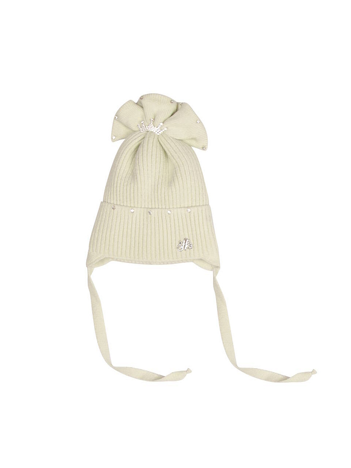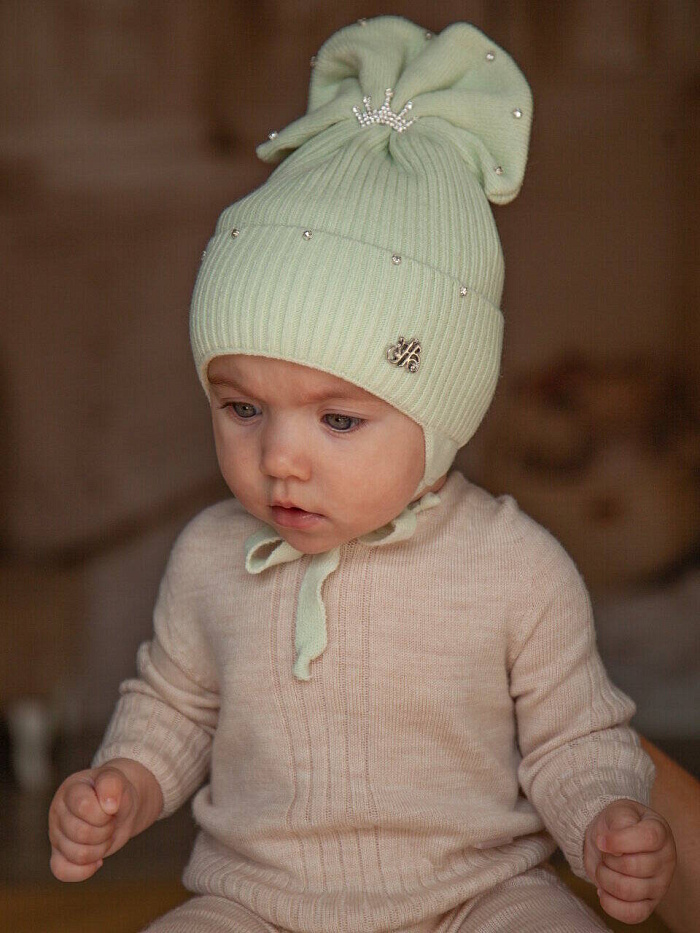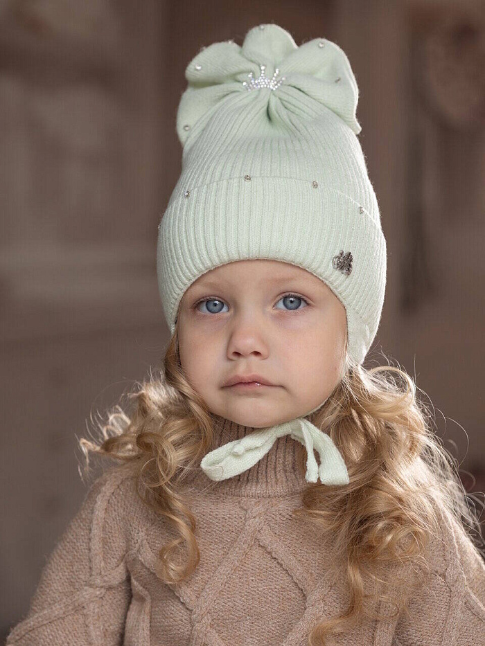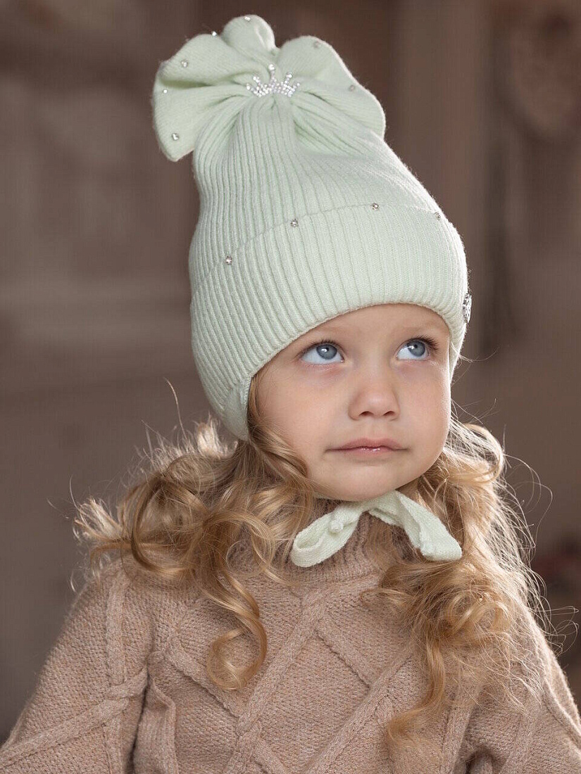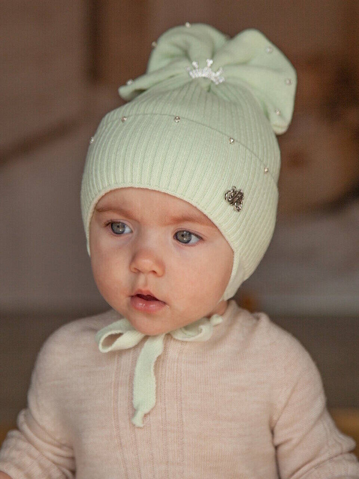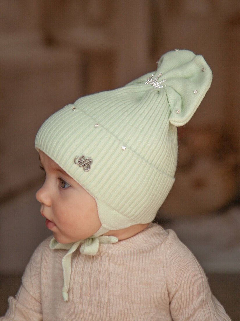Шапка демисезонная с бантом на завязках, цв. мята, р. 38-40