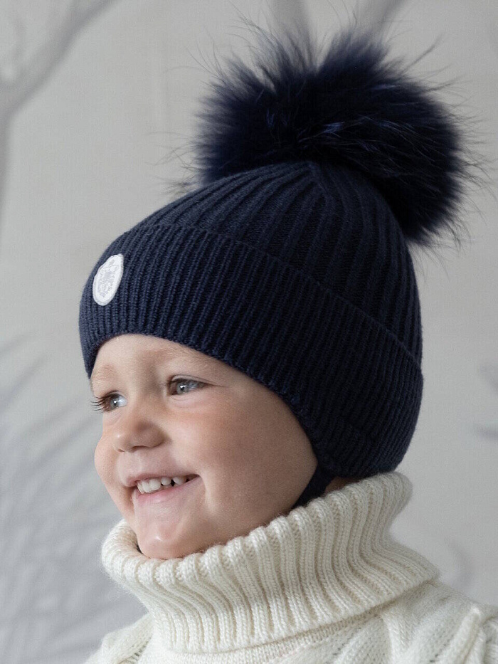 Шапка зимняя с меховым помпоном на завязках, р. 38-40