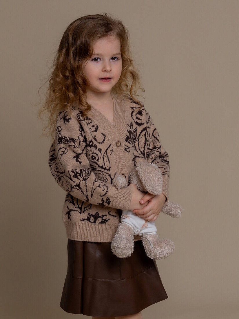 Кардиган на пуговицах "Цветы", цв. бежевый, р. 100