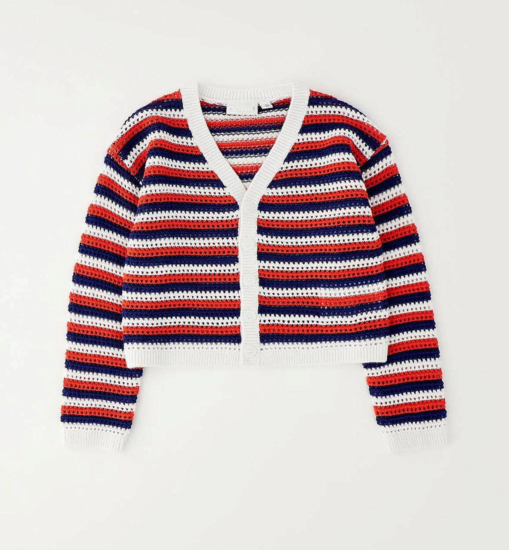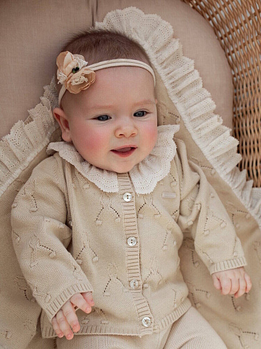Кардиган для девочек Sarabanda из ажурного трикотажа. Застежка на пуговицы.