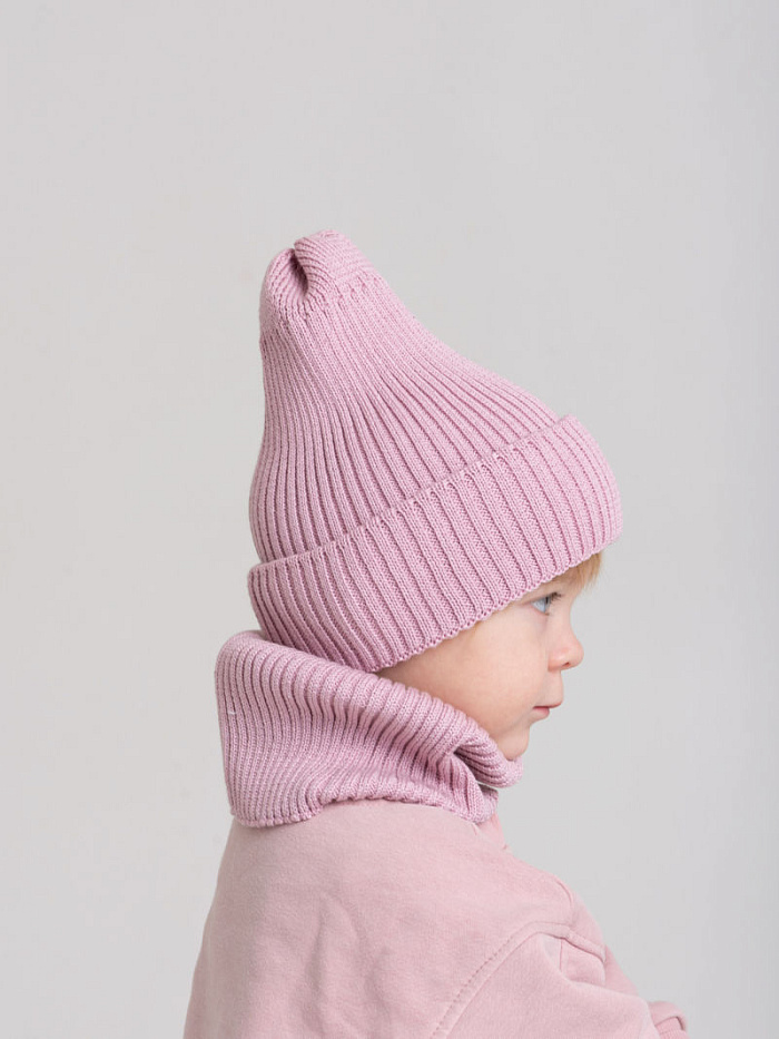 Однослойная шапка с отворотом (3 слоя по ушкам) имеет трендовый фасон бини или тыковки, что делает сам товар и образ ребенка оригинальным и запоминающимся. Связана из пряжи хлопок+акрил. Компромисс между ребенком и мамой: шапка тонкая, но теплая. Данная модель просто и органично сочетается с любой верхней одеждой. Снуд однослойный, в один оборот, надевается под куртку. На температуру до минус 10 градусов (с капюшоном). Рекомендуется режим деликатной стирки в машине с щадящими моющими средствами при 30 градусах.
