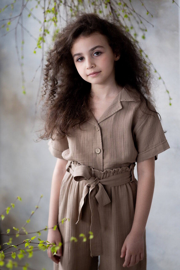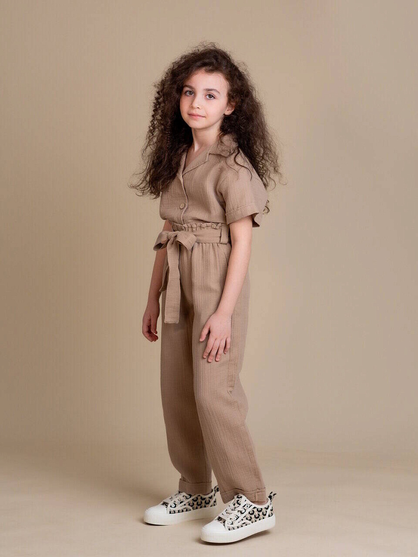 Комплект жакет+ брюки, цв. бежевый, р. 134