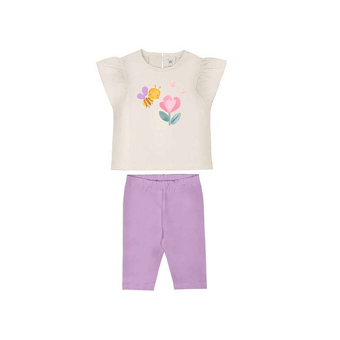 Комплект одежды состоит из футболки и леггинсов, созданных специально для девочки. Мягкие и приятные на ощупь материалы обеспечивают комфорт при носке в течение всего дня. Футболка выполнена в универсальном стиле, который легко сочетается с разными элементами гардероба, а леггинсы имеют эластичную посадку, позволяющую свободно двигаться и заниматься активными играми. Такой набор идеально подходит для повседневной носки и прогулок. Изделия отличаются аккуратным пошивом и качественной отделкой, что гарантирует долговечность и сохранение первоначального вида даже после многократных стирок. Этот комплект одежды для девочки станет хорошим выбором для тех, кто ценит комфорт и стиль в детской одежде.