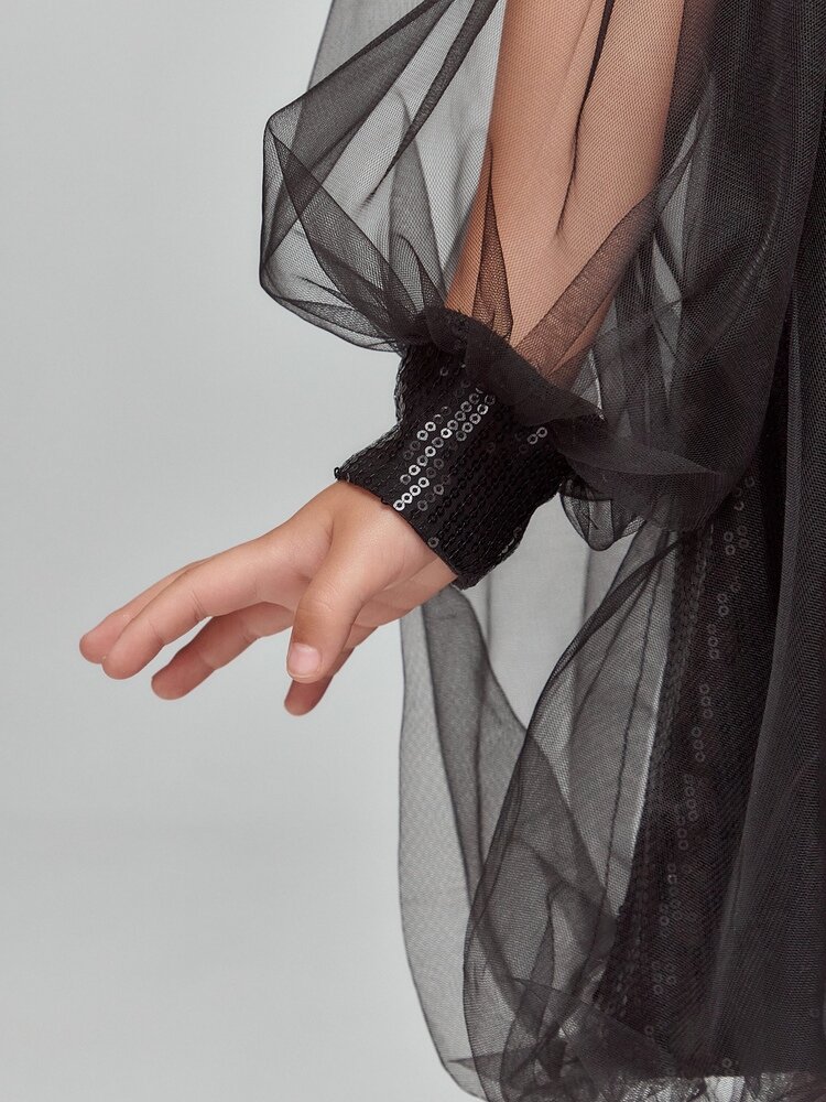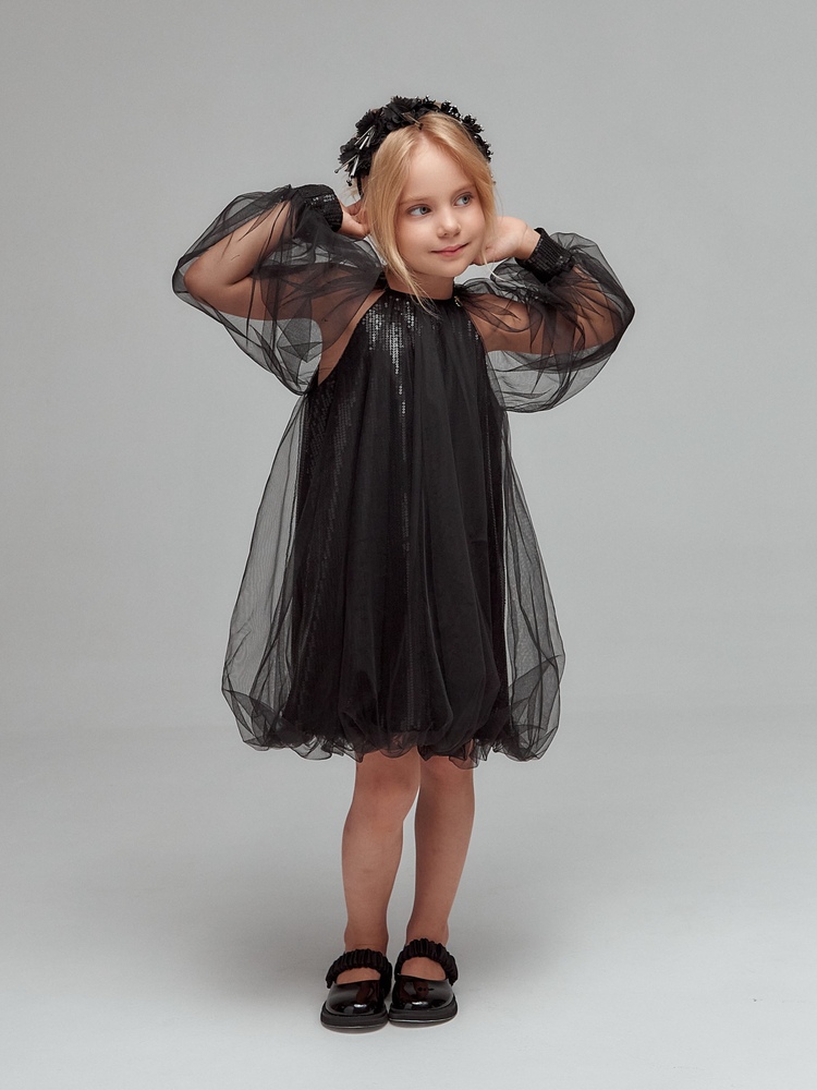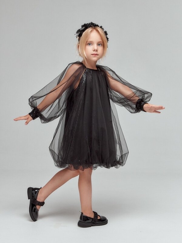 Великолепное платье "Шанталь" бренда Unona D'Art создано для самых маленьких модниц. Платье идеально подходит для особых случаев, радостных праздников и волшебных моментов. Верхний слой из легкой сетки создает воздушный и романтичный облик, а второй слой из ткани с пайетками добавляет блеска и шарма. Уникальный фасон платья-баллон придаёт силуэту неповторимую элегантность и пышность. Широкие прозрачные рукава добавляют утонченности, подчеркивая изящество образа. Манжеты на рукавах, вышитые пайетками, эффектно сверкают на свету, привлекая внимание и восхищение. Каждый элемент тщательно продуман для создания совершенного ансамбля.