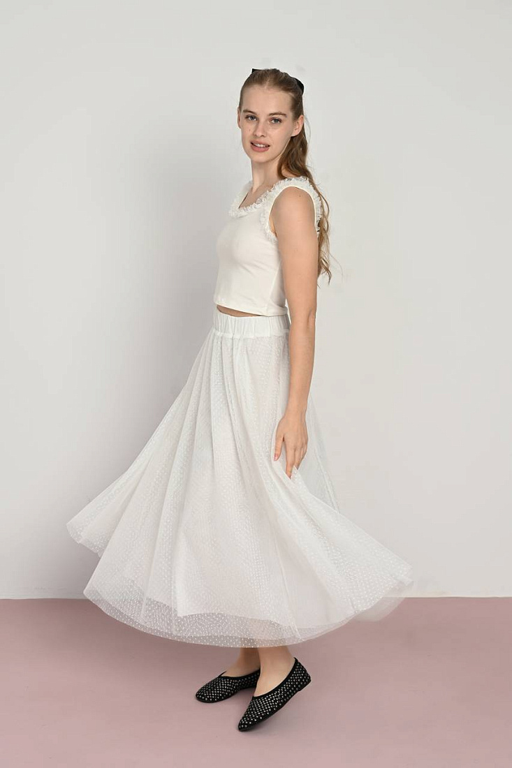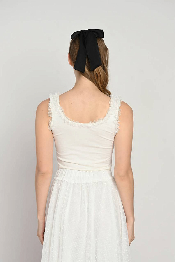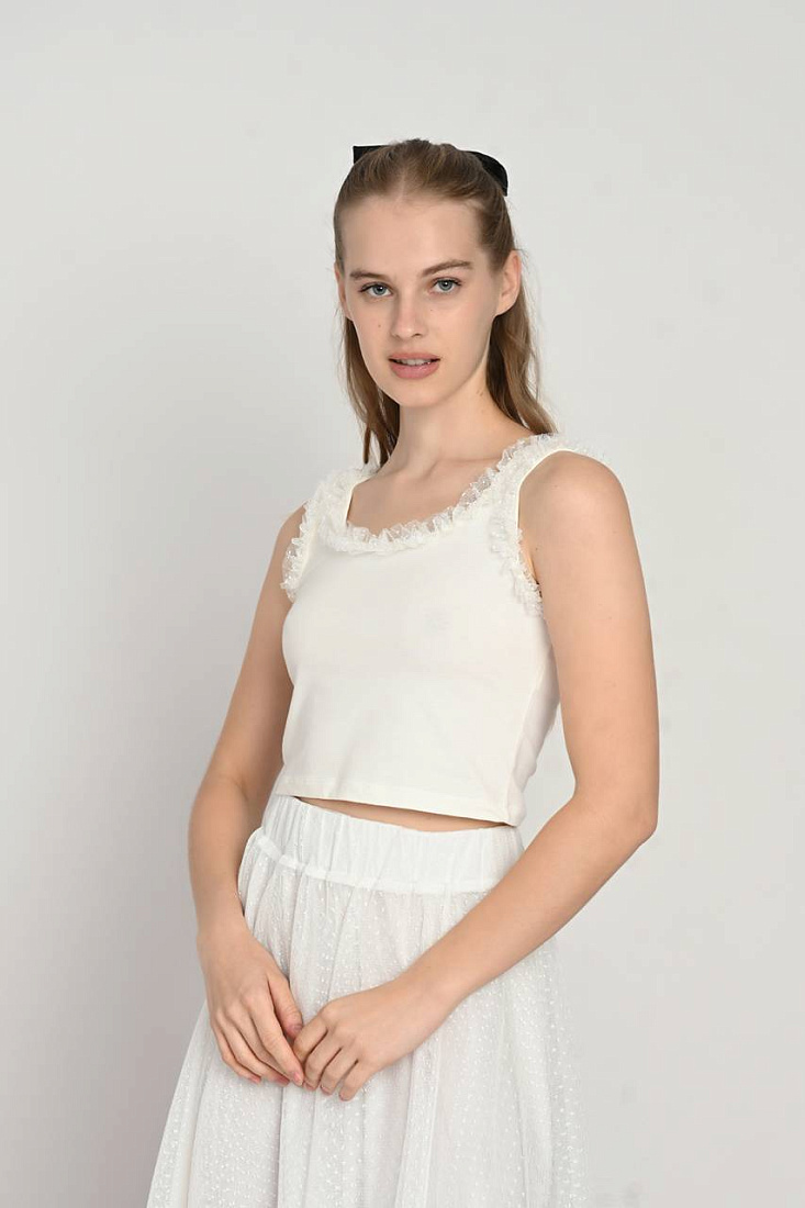 Топ экрю с шифоновой отделкой для девочки представляет собой стильную и легкую одежду, идеально подходящую для теплого времени года. Мягкий оттенок экрю придает изделию нежность и универсальность, позволяя сочетать его с различными элементами гардероба. Верх выполнен из приятного к телу материала, который обеспечивает комфорт на протяжении всего дня. Особое внимание привлекает воздушная шифоновая отделка, добавляющая модели изящества и легкости. Такой декор подчеркивает детскую невинность и дополнительно украшает образ, делая топ подходящим для повседневной носки и особых случаев. Благодаря удобству кроя и продуманному дизайну одежда не сковывает движений, что делает его отличным выбором для активных девочек. Этот топ сочетает в себе практичность и эстетичность, позволяя создавать разнообразные комплекты в стиле casual или более нарядные ансамбли. Высокое качество материалов гарантирует долговечность и сохранение первоначального вида даже после многочисленных стирок.
