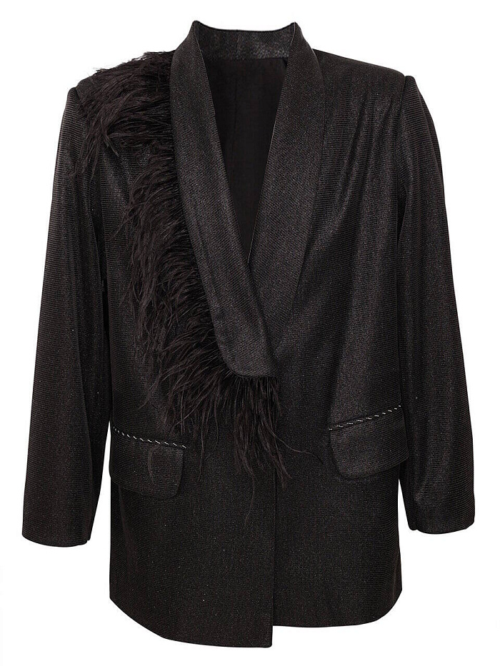 Жакет "Черный блеск с перьями" р.122-164, цв. черный, р. 8 лет (128 см)
