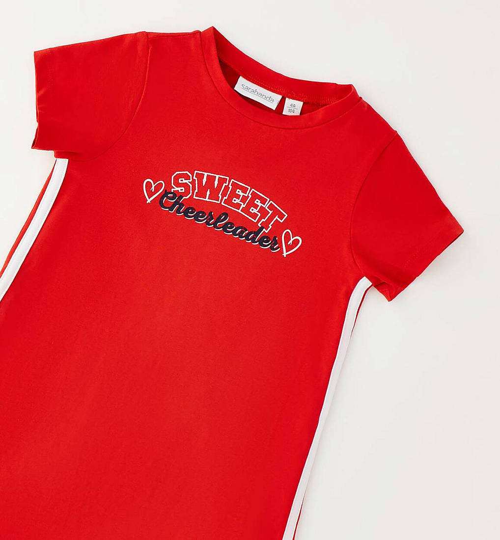 Платье для девочек Sarabanda из эластичного хлопкового джерси с принтом спереди. Длина мини. Боковые вставки.