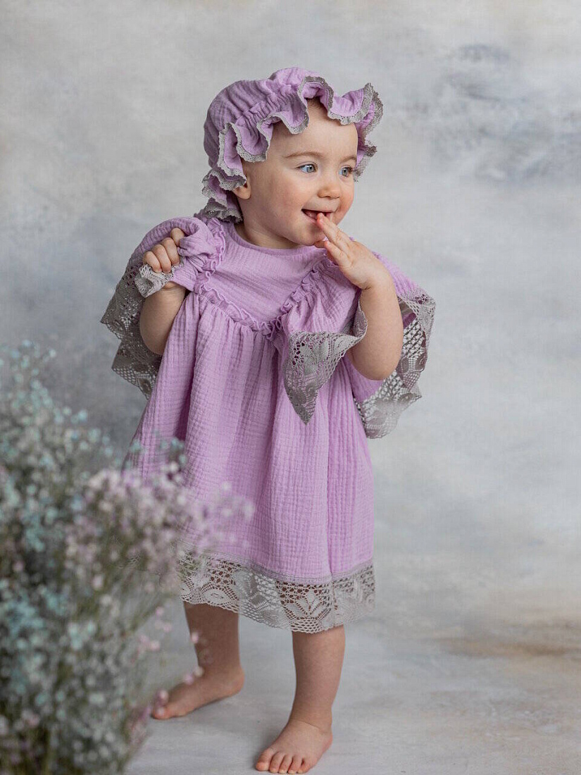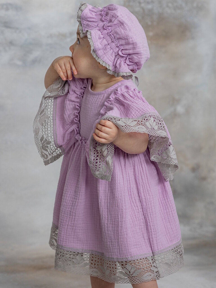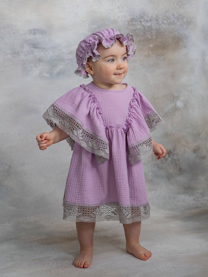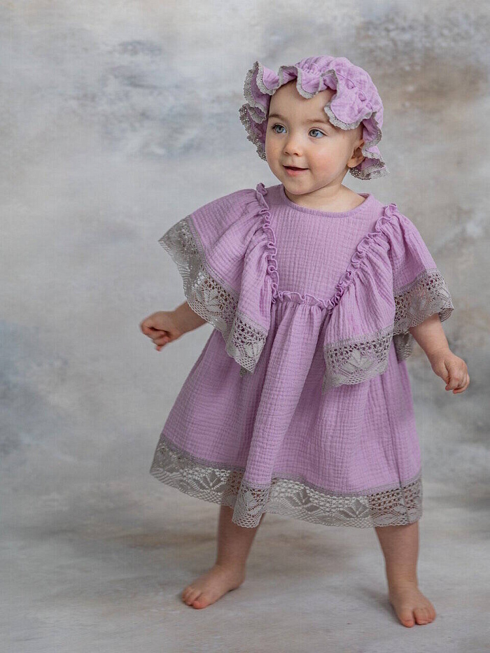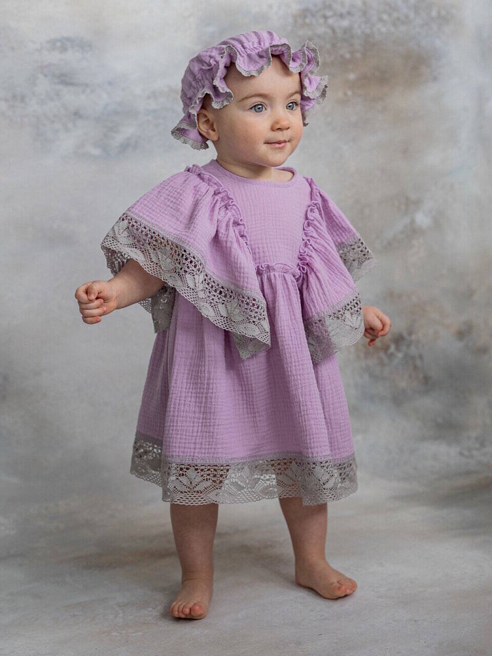 Удивительно мягкое, комфортное и красивое муслиновое платье. Украшено нежным кружевом из органического хлопка. Идеальный вариант для летних прогулок, праздников и фотосессий! Благодаря уникальным свойствам органического муслина такое платье не даст нежной, чувствительной, детской коже перегреться. А свободный крой изделия подарит юным модницам только чувство комфорта.