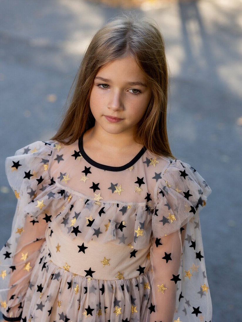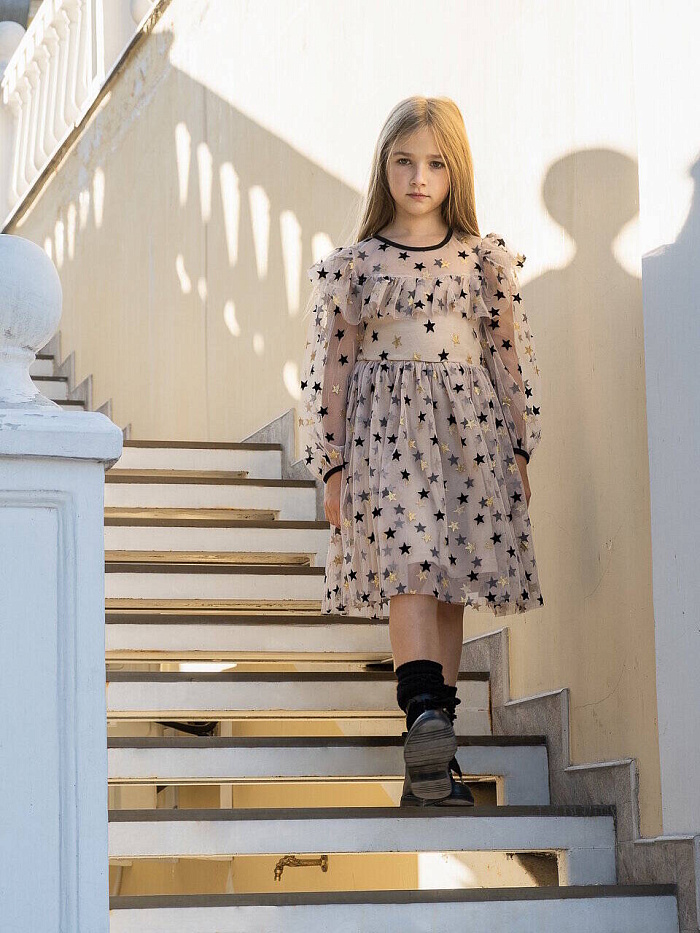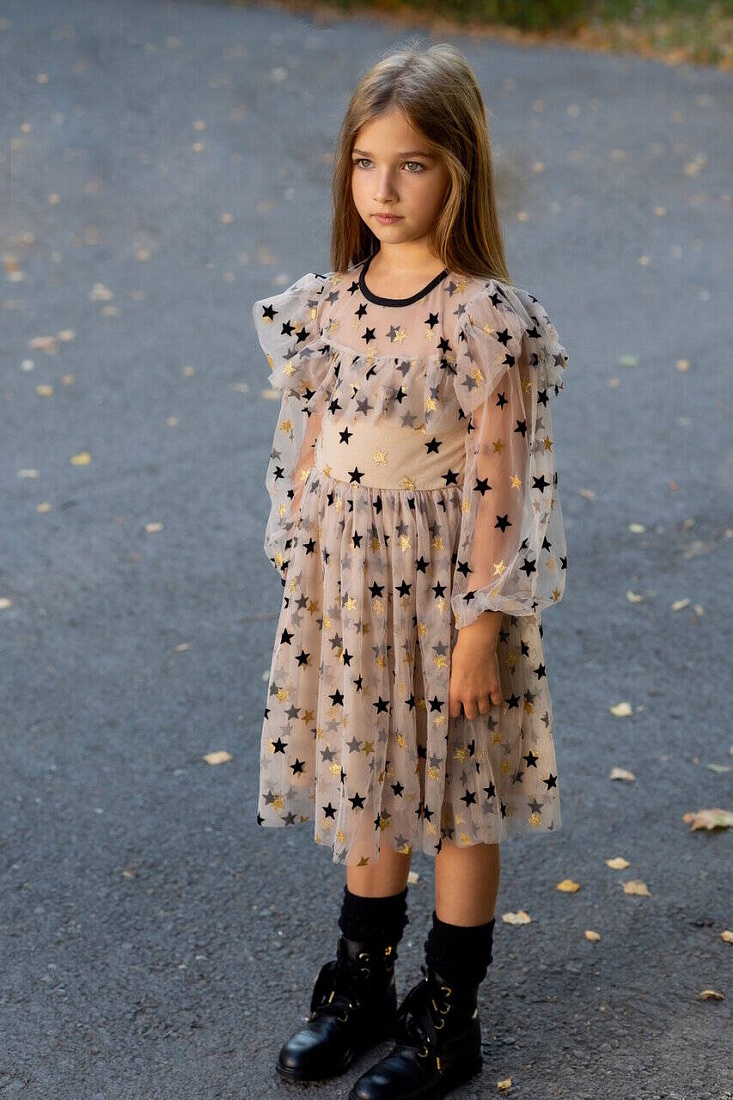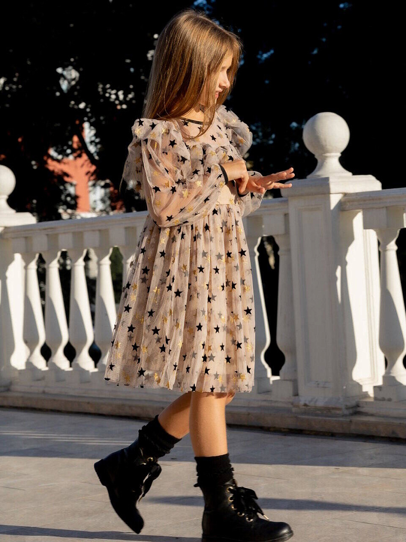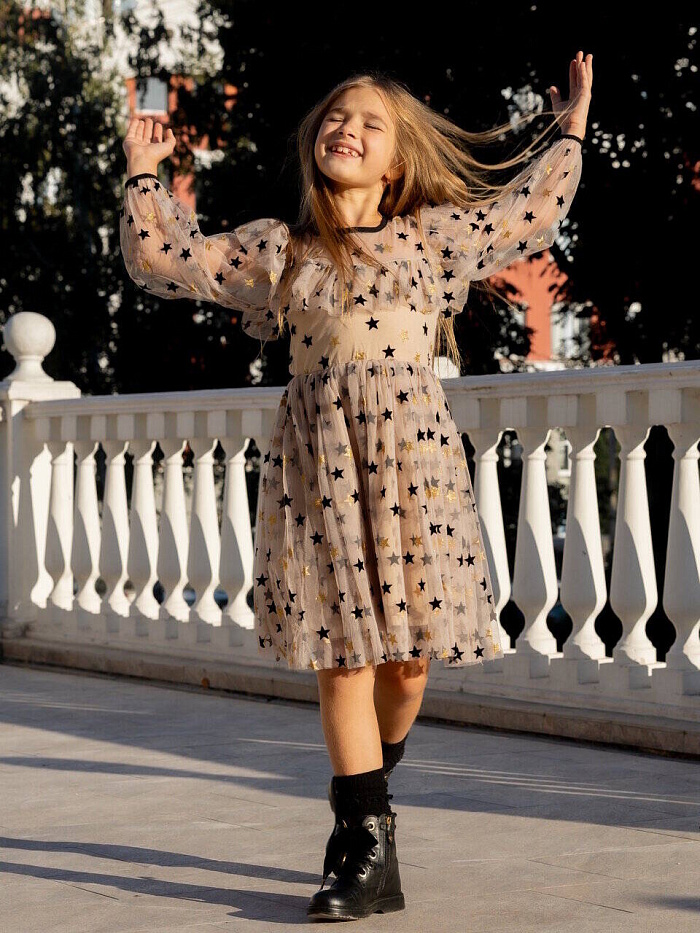 Платье "Звезды" сетка, цв. бежевый, р. 98