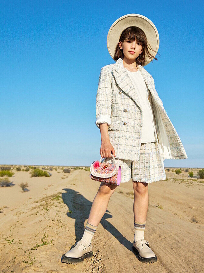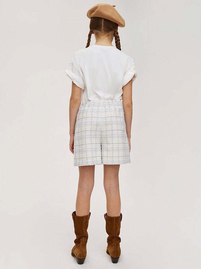 Шорты "Встречные складки", цв. молочный/голубой, р. 12 лет (152 см)