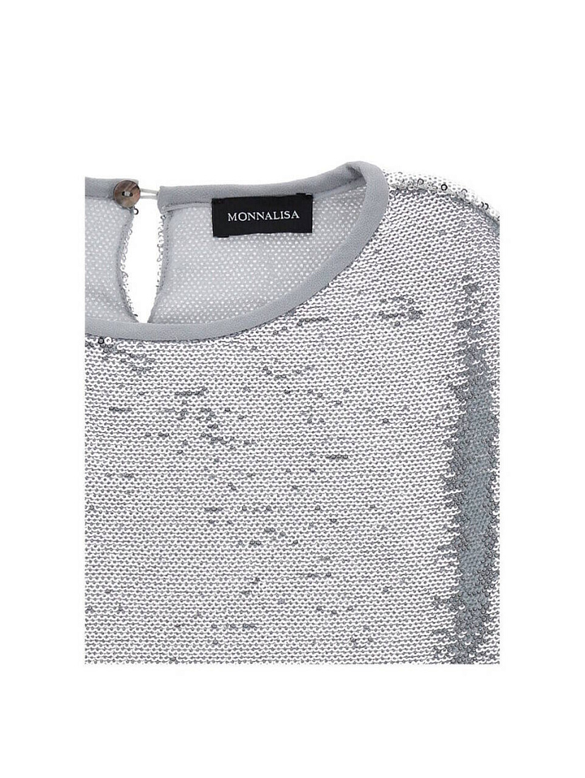 Блузка Monnalisa с пайетками расклешенного кроя на мягкой муслиновой подкладке. Эта сверкающая модель великолепно дополнит образы для вечеринок.