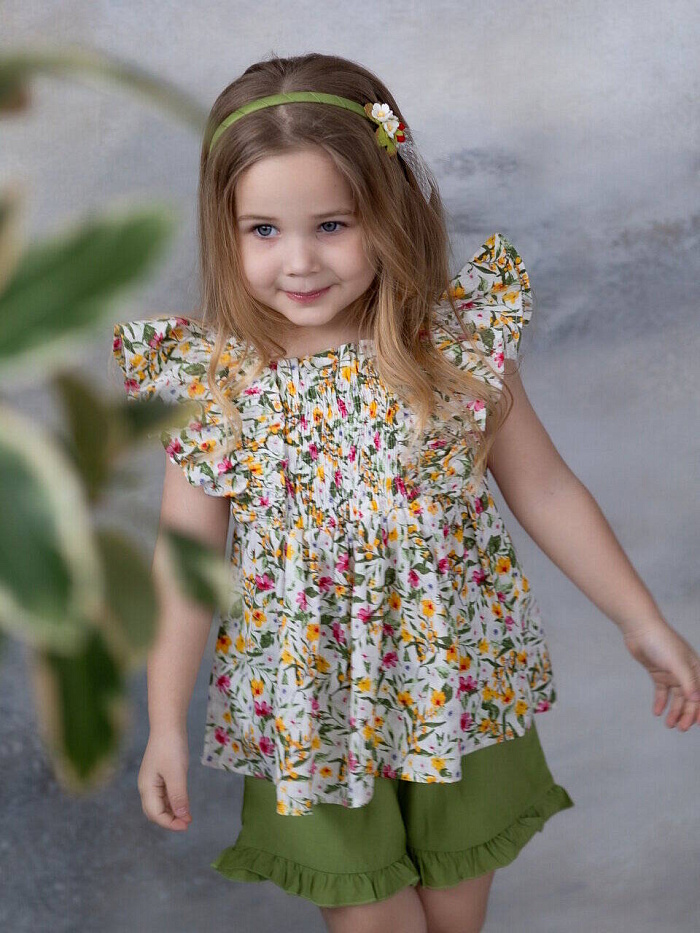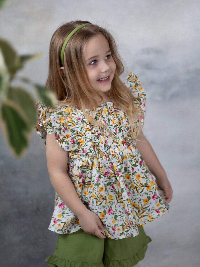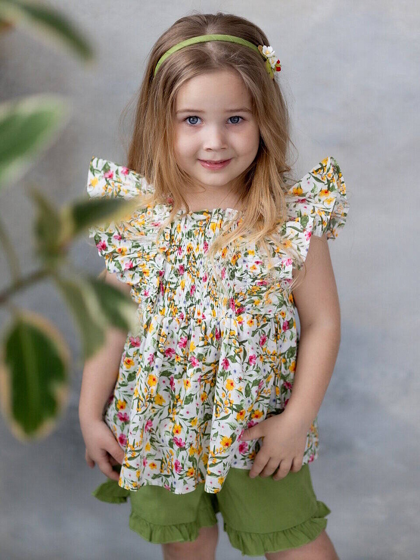 Топ "Цветы", цв. белый/зеленый, р. 106