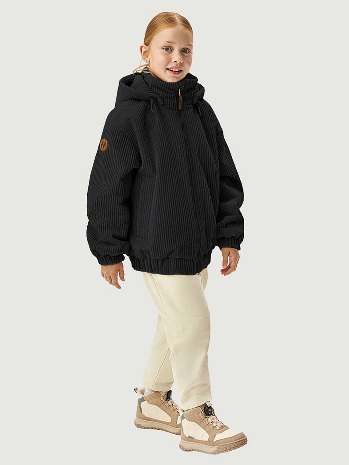 Куртка ОВЕР из вельветовой ткани на мембране 5000/5000. Мембранная ткань - это непродуваемый и водонепроницаемый материал, который надежно защищает от ветра и влаги. Благодаря дышащим свойствам мембраны ребенку будет комфортно в любую погоду, и он не вспотеет. С лицевой стороны ткань с бархатистой мягкой структурой в рубчик. Мембрана в сочетании с утеплителем нового поколения FIBERlite сохраняет тепло во время прогулок, позволяя телу дышать. Хлопковая подкладка обеспечит повышенный комфорт для ребенка. Функционал: - центральная застежка на молнии, - ветрозащитная планка, - прорезные карманы с застежкой на магнитные кнопки, - внутренний карман на молнии, - капюшон съемный на кнопках с кулисой для регулировки объема. Мы все продумали до мелочей, поэтому у модели манжет рукава и низ куртки на резинке, внутренние бретели для возможности снять куртку в помещении. Комфортная температура эксплуатации от -5°С до +10°С.