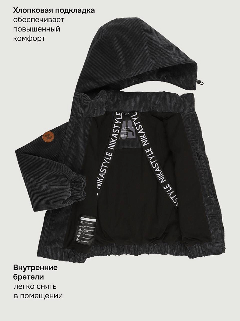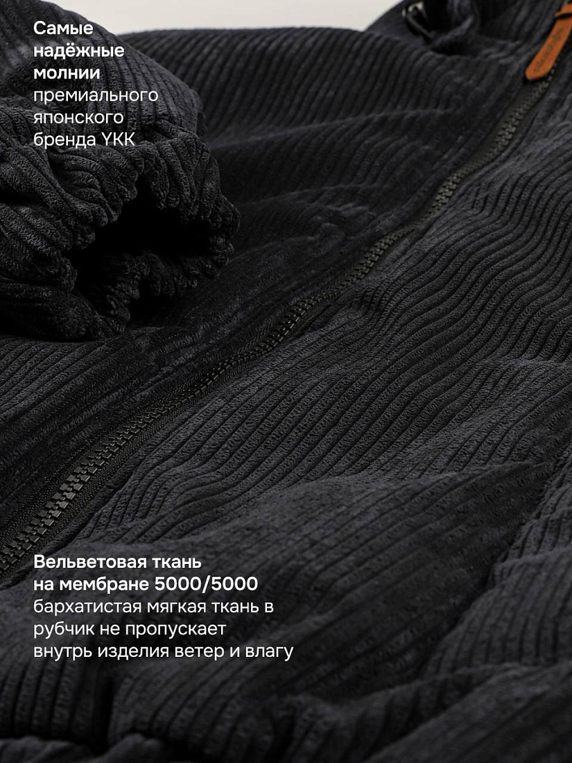 Куртка ОВЕР из вельветовой ткани на мембране 5000/5000. Мембранная ткань - это непродуваемый и водонепроницаемый материал, который надежно защищает от ветра и влаги. Благодаря дышащим свойствам мембраны ребенку будет комфортно в любую погоду, и он не вспотеет. С лицевой стороны ткань с бархатистой мягкой структурой в рубчик. Мембрана в сочетании с утеплителем нового поколения FIBERlite сохраняет тепло во время прогулок, позволяя телу дышать. Хлопковая подкладка обеспечит повышенный комфорт для ребенка. Функционал: - центральная застежка на молнии, - ветрозащитная планка, - прорезные карманы с застежкой на магнитные кнопки, - внутренний карман на молнии, - капюшон съемный на кнопках с кулисой для регулировки объема. Мы все продумали до мелочей, поэтому у модели манжет рукава и низ куртки на резинке, внутренние бретели для возможности снять куртку в помещении. Комфортная температура эксплуатации от -5°С до +10°С.