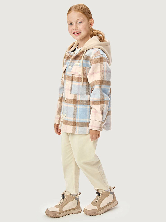 Куртка-рубашка КАМПУС в клетку из пальтовой ткани дублированной мехом. Пальтовая ткань с мягкой ворсистой фактурой, приятная на ощупь. Мех-барашек с изнаночной стороны обеспечивает защиту от холода и дарит ощущение тепла и уюта. Свободный прямой крой со спущенной линией плеча не сковывает движение и создает максимальный комфорт в носке. Функционал: - центральная застежка на кнопки, - накладные карманы с клапаном на кнопке. Мы все продумали до мелочей, поэтому у модели низ рукава с манжетой на кнопке, втачной капюшон из футера. Комфортная температура эксплуатации от +5°С до +15°С.
