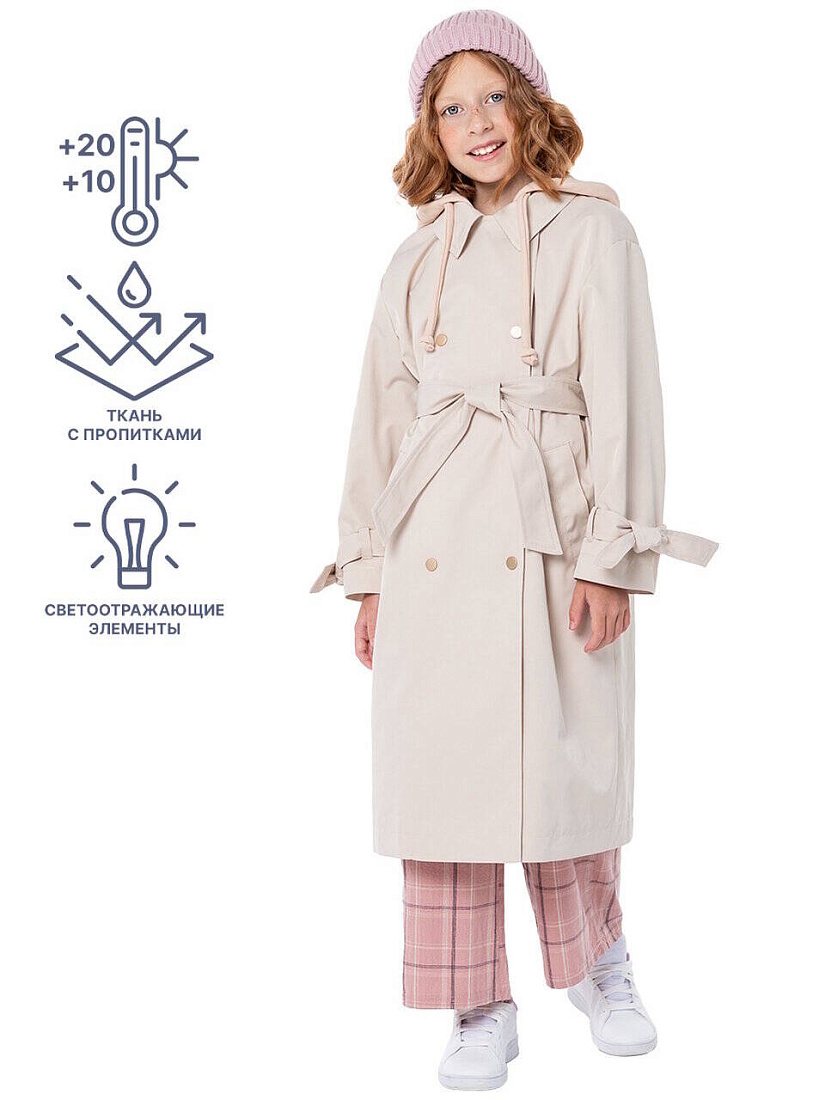 Плащ ТРЕНЧ из курточной приятной на ощупь ткани с водо-грязеотталкивающей пропиткой. Курточная ткань - это водонепроницаемый материал, который надежно защищает от влаги. Водоотталкивающая пропитка. Отталкивает влагу, позволяя ей скатывать с поверхности. Наносится только на внешнюю сторону материала. Сохраняет воздухопроницаемость материала. Благодаря дышащим свойствам ребенку будет комфортно в любую погоду, и он не вспотеет.