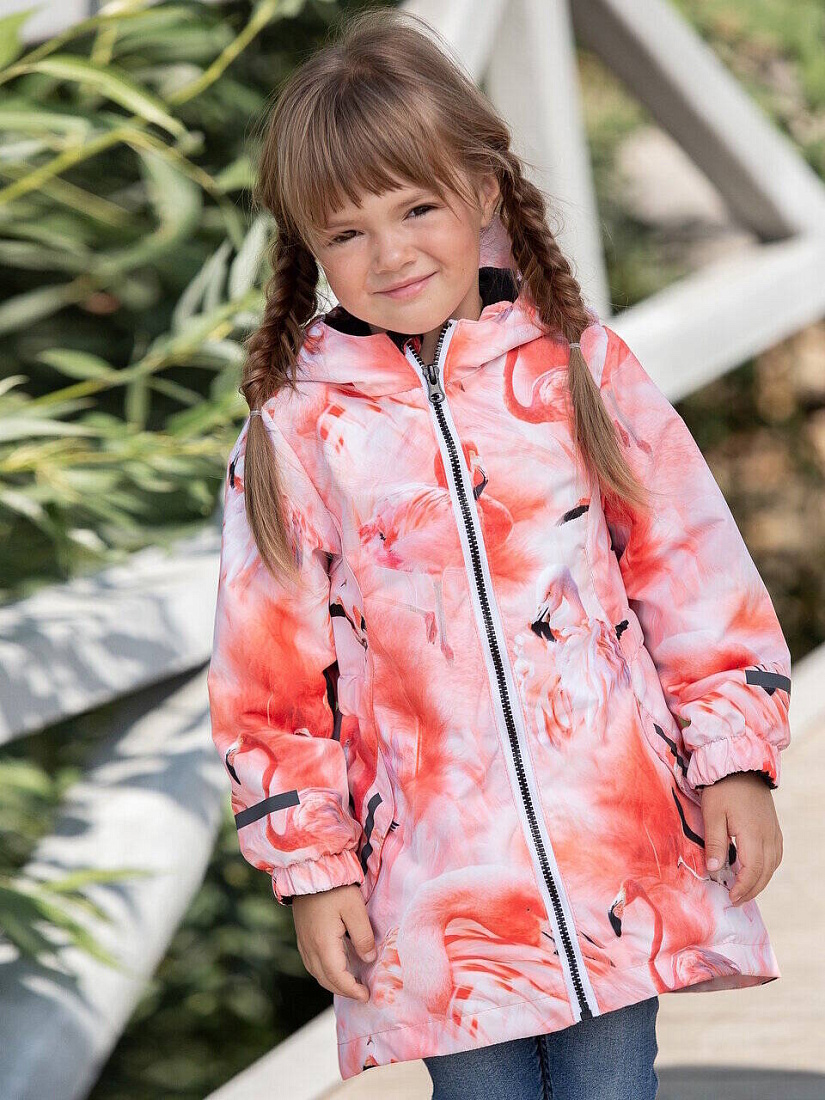 Демисезонная ветровка для девочки из мембранной ткани Lokker Twill 5000/5000. Модель исполнена в авторском принте, декорирована двумя карманами, прикрытыми клапаном. Ветрозащитные элементы: удлиненная модель с фиксированной утяжкой по линии талии, эргономичный втачной капюшон с фиксированной резинкой по бокам и небольшим козырьком, внутренняя ветрозащитная планка с клапаном от защемления подбородка, рукав на резинке с мягкой обтачкой. Светоотражающие элементы в виде канта в обрамлении карманов и фирменного логотипа. Подкладка выполнена из микрофлиса, в рукавах - полиэстер.