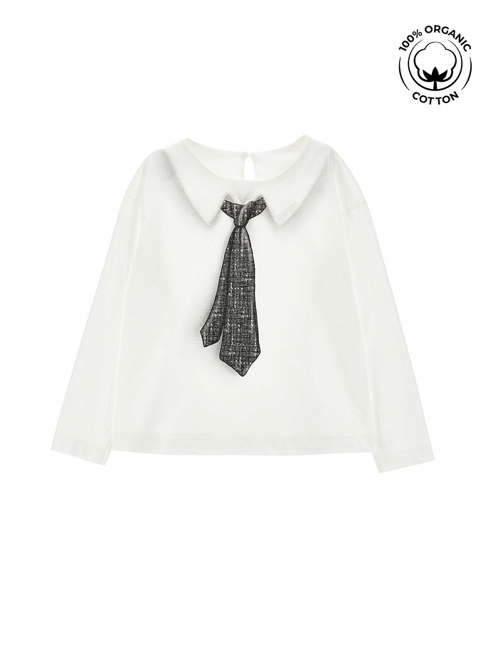 Блузка для девочки Monnalisa из органического хлопка с забавным принтом и эффектом оптической иллюзии.