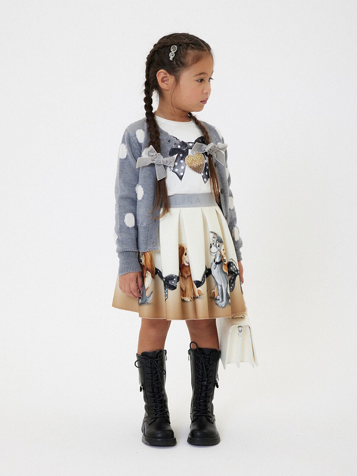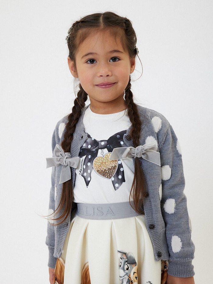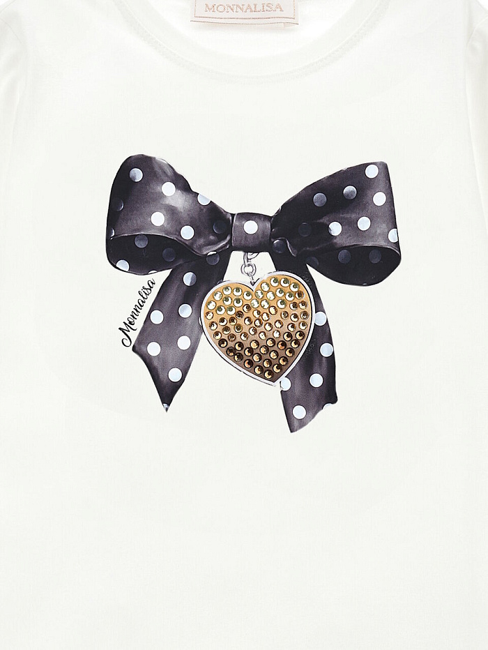 Лонгслив для девочки Monnalisa из комфортной эластичной ткани, украшенный нежным принтом