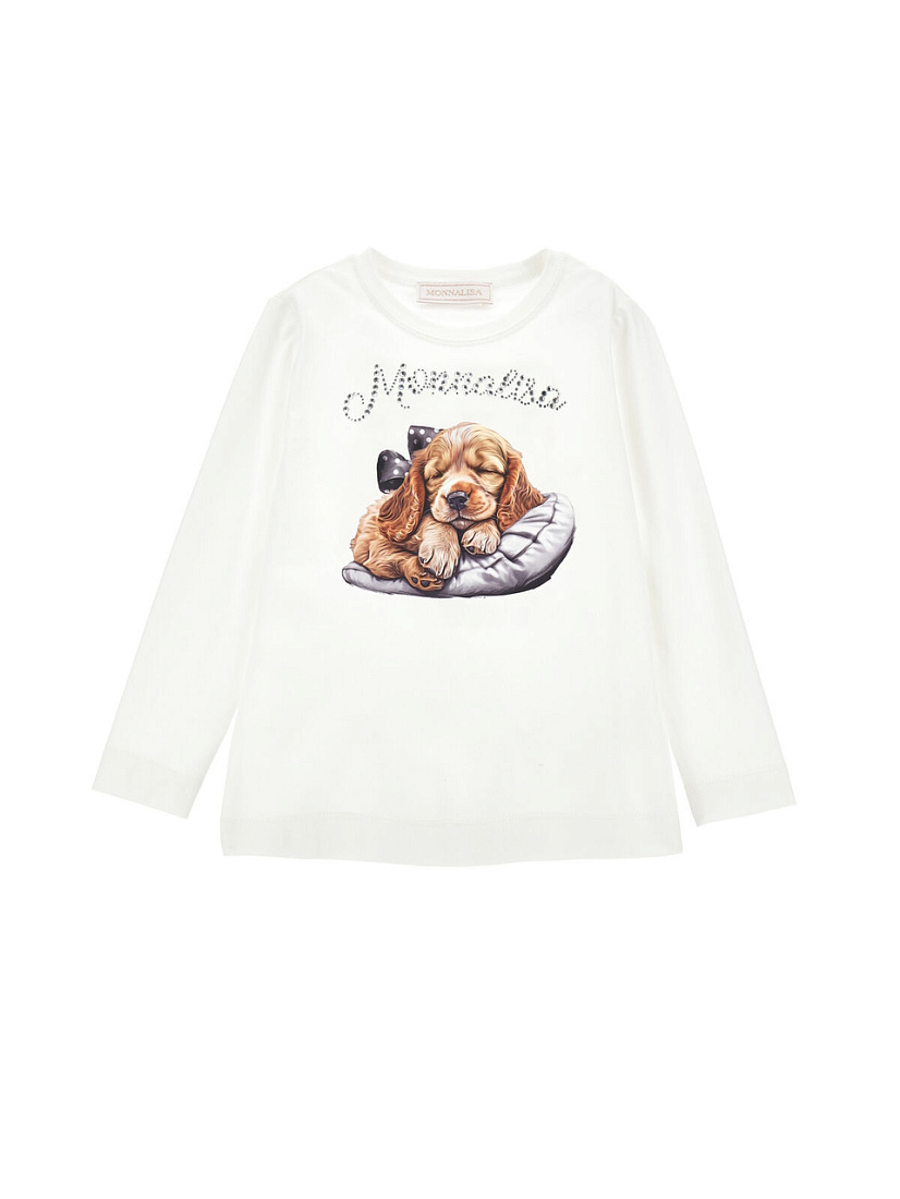 Лонгслив для девочки Monnalisa из комфортной эластичной ткани, украшенный забавным принтом