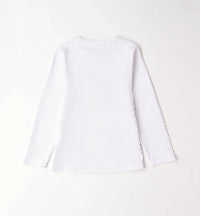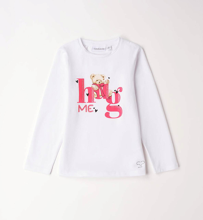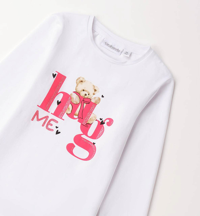 Свитер с круглым вырезом и длинными рукавами Sarabanda для девочек из эластичного хлопкового джерси. Милый принт спереди с блестящими деталями.
