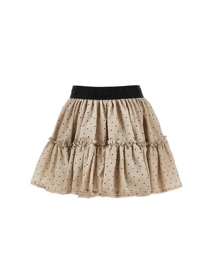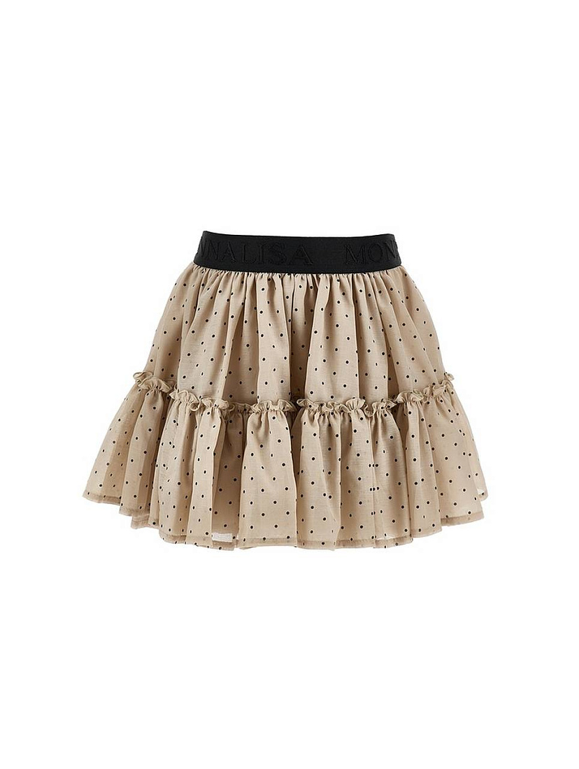 Юбка для девочки выполнена из легкой ткани бежевого цвета с мелким черным горохом, что придает изделию нежный и нарядный вид. Материал визуально воздушный, приятный на ощупь, хорошо держит форму за счет сборки по всей длине. Эластичный пояс черного цвета обеспечивает комфортную посадку и легко регулируется по талии, что удобно для активного движения и повседневной носки. Юбка для девочки украшена оборкой, проходящей по горизонтали чуть ниже пояса, создающей дополнительный объем и подчеркивающей многослойность изделия. Нижний край выполнен с аккуратной подгибкой, что повышает износостойкость и сохраняет аккуратный внешний вид после стирки. Мелкий узор в горошек универсален и подходит для создания стильных образов на каждый день или для особых случаев. Юбка для девочки гармонично сочетается с различными топами, футболками или блузками, подходит для весенне-летнего сезона. Модель отличается легкостью и свободным кроем, что обеспечивает свободу движений и комфорт в течение всего дня.