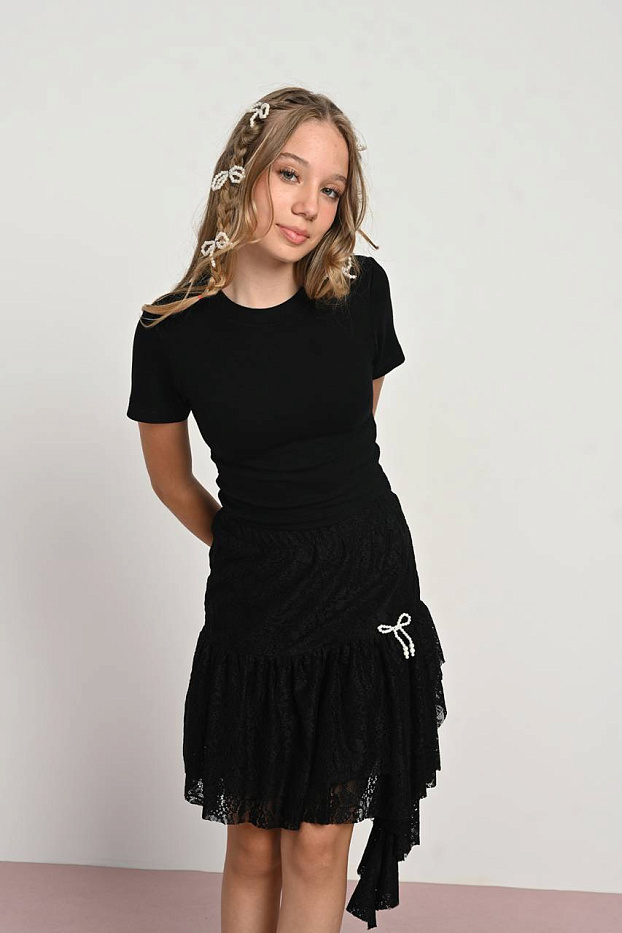 Юбка гипюровая черная для девочки – стильное и практичное решение для современного гардероба. Наряд выполнен из легкой и воздушной ткани с привлекательной прозрачной текстурой, что подчеркивает изящный внешний вид изделия. Такой фасон отлично подходит для повседневного ношения, школьных мероприятий или праздничных событий. Благодаря элегантному гипюровому материалу изделие приобретает утонченность, а универсальный цвет позволяет сочетать его с разными верхами и аксессуарами.Удобная посадка обеспечивает комфорт на весь день и не сковывает движения ребенка, что особенно важно для активных девочек. Эластичный пояс помогает достичь идеальной фиксации, а приятная на ощупь подкладка придает мягкость и защищает кожу. Легкая длина и легкость уходят в тандеме с прочностью и износостойкостью материала – юбка сохраняет аккуратный вид даже после многократных стирок.Гипюровая отделка подчеркивает праздничность и индивидуальность стиля, делая образ особенным без усилий.