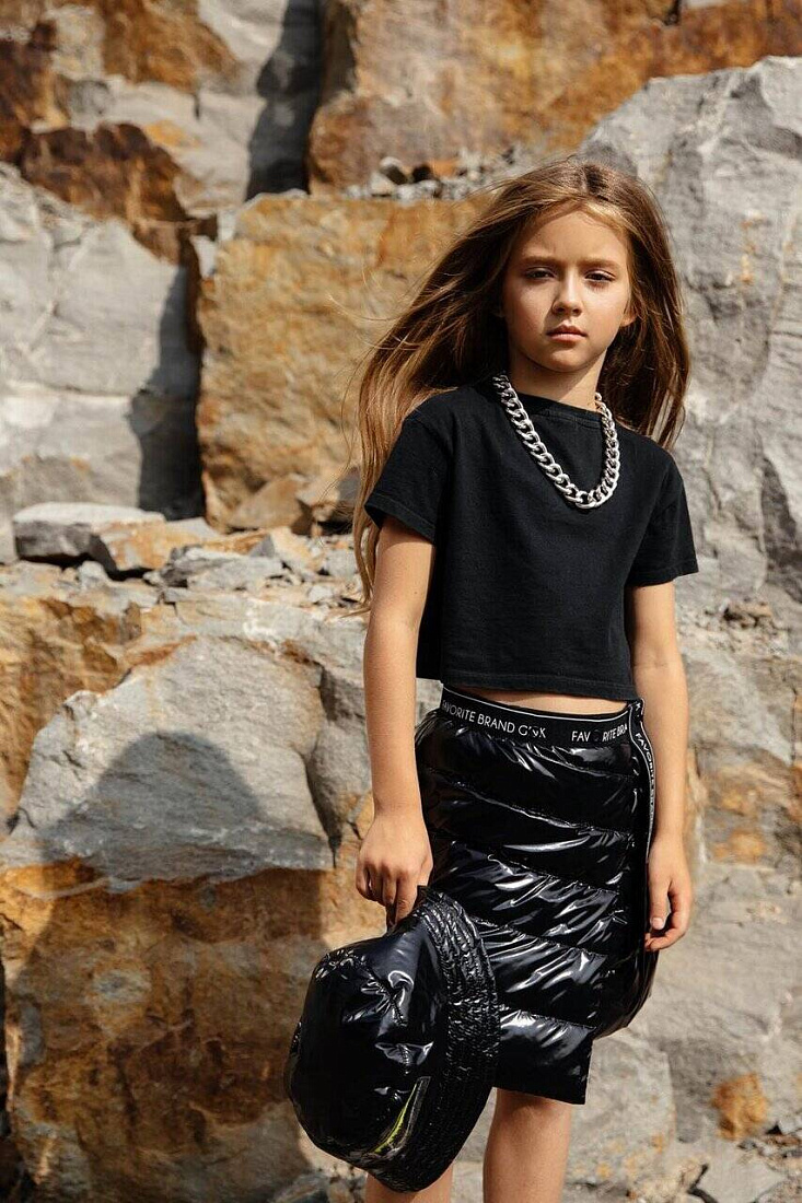 - Резинка с фирменным логотипом - пояс юбки. Дизайнерская прозрачная виниловая нашивка с полимерным принтом (логотип) - перед.
