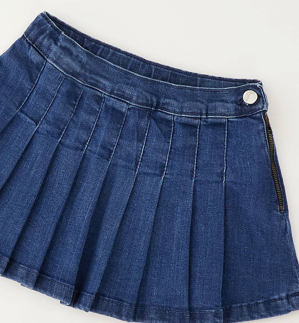 Джинсовая юбка Sarabanda из эластичного хлопка. Застежка на молнию и пуговицы сбоку. Плиссированная юбка мини-длины. Регулируемая талия с внутренней эластичной петлей.