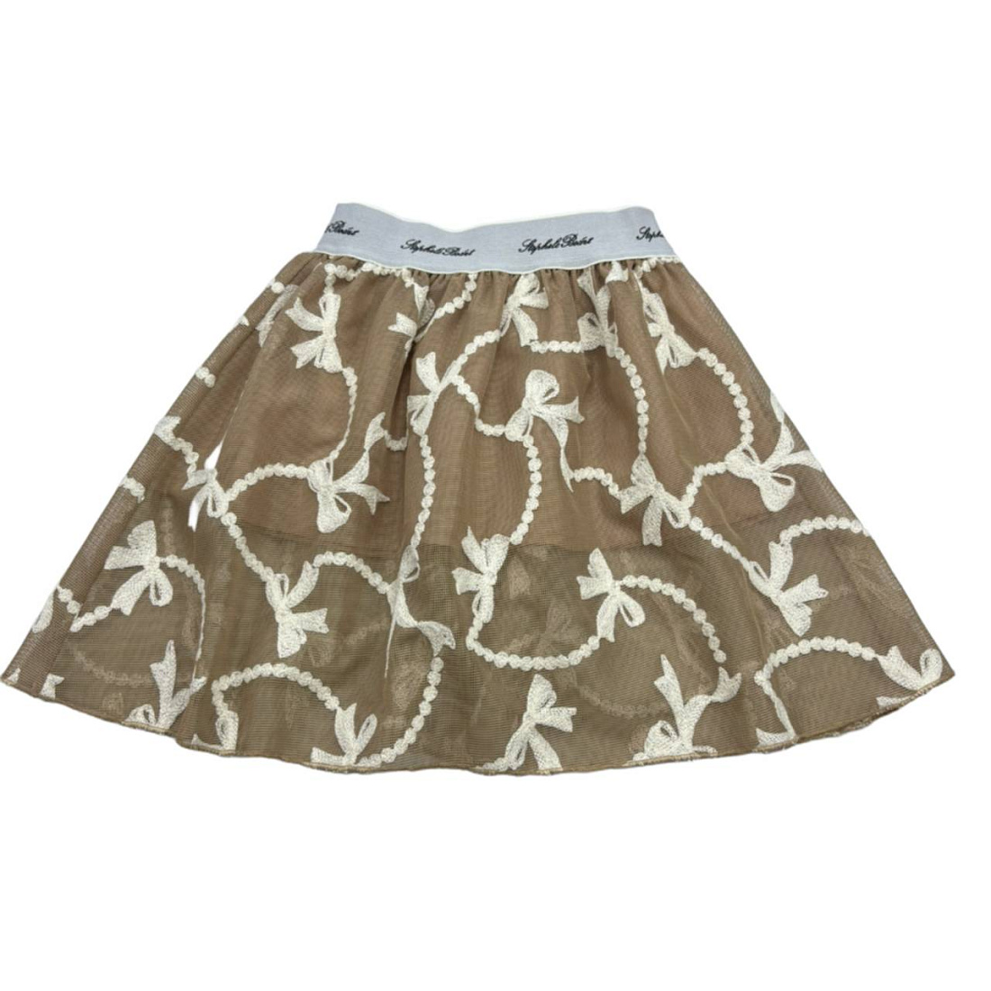 Коричневая юбка с бантиками идеально подойдет для девочки, создавая нежный и стильный образ. Модель выполнена из приятного материала, который обеспечивает комфорт при носке и не стесняет движений. Украшение в виде аккуратных бантиков добавляет изящества и подчеркивает детскую привлекательность. Этот вариант одежды отлично сочетается с различными верхами и обувью, что позволяет создавать разнообразные комплекты на каждый день и для особых случаев. Практичный цвет легко комбинируется с другими оттенками в гардеробе, делая юбку универсальным элементом детской одежды. Изделие отличается качественным пошивом и аккуратными деталями, что гарантирует долговечность и сохранение внешнего вида даже после многократных стирок. Эта коричневая юбка с бантиками для девочки станет отличным выбором для родителей, которые ценят удобство и стиль в детской одежде.