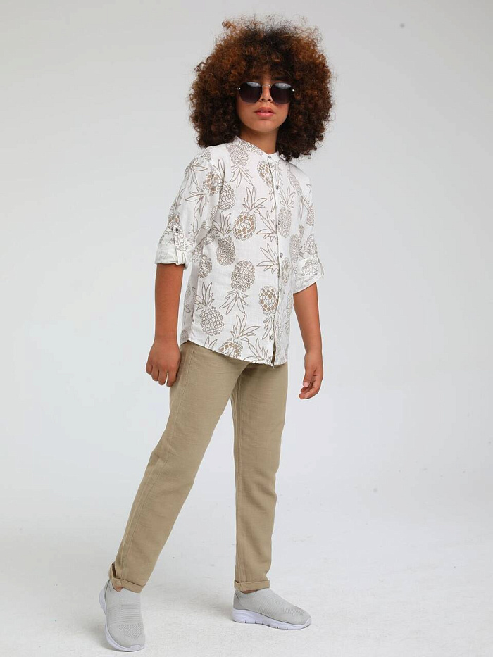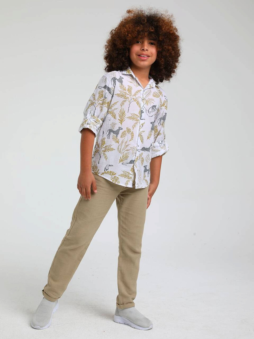 Легкие прямые брюки JackLions бежевого цвета для мальчика - стильный вариант для повседневных и праздничных образов в теплое время года. Хлопковая ткань обеспечит оптимальный воздухообмен, высокую прочность, стойкость к солнечным лучам и простоту в уходе, в том числе быстрое высыхание после стирки.
