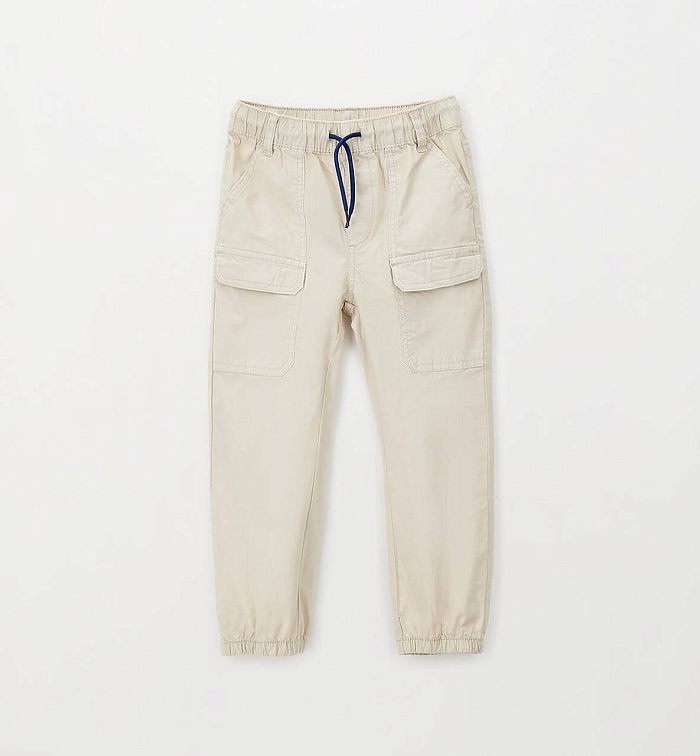 Длинные брюки для мальчиков Sarabanda из хлопкового поплина. Манжеты на резинке, передние карманы. Эластичный пояс со шнурком. Свободный крой.