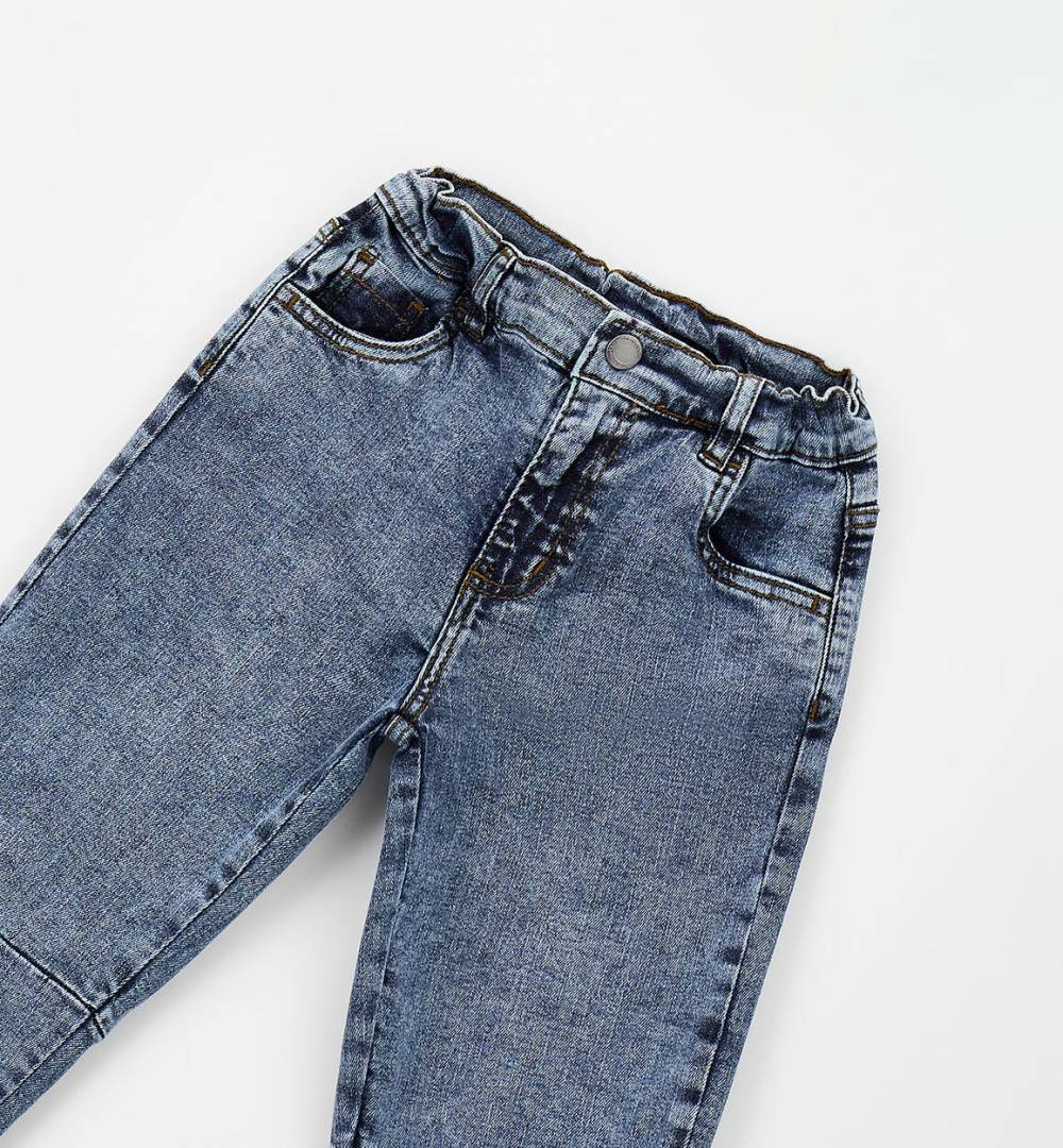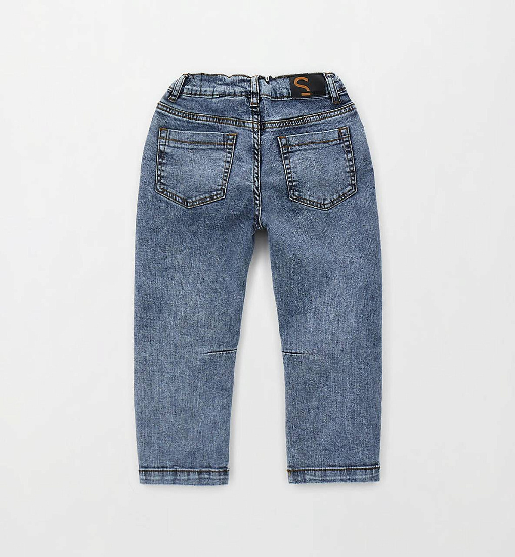 Длинные хлопковые брюки из денима Sarabanda для мальчиков. Застежка на молнию и пуговицы. Свободный крой. Регулируемая талия с внутренней эластичной петлей.