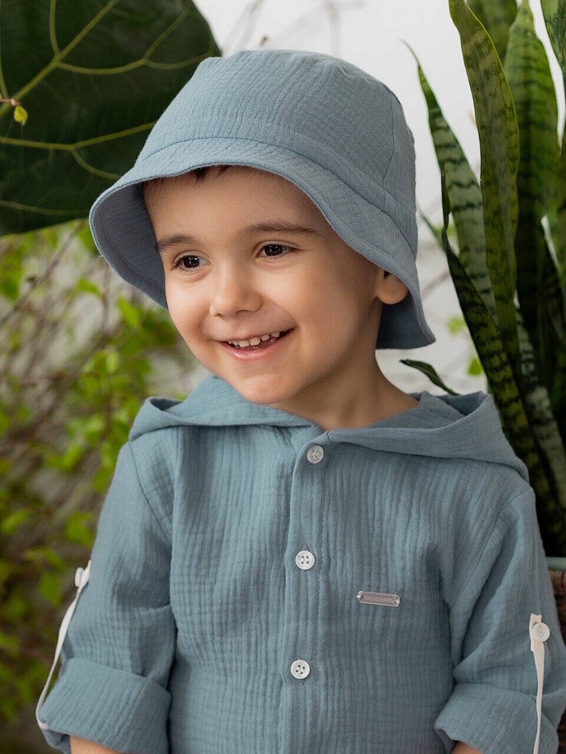 Муслиновая панама из органического хлопка - это настоящая находка для летнего периода! Панама защитит голову ребёнка от знойных солнечных лучей и в то же время не даст перегреться. Уникальные свойства муслина подарят ребёнку только чувство легкости, комфорта и безопасности.
