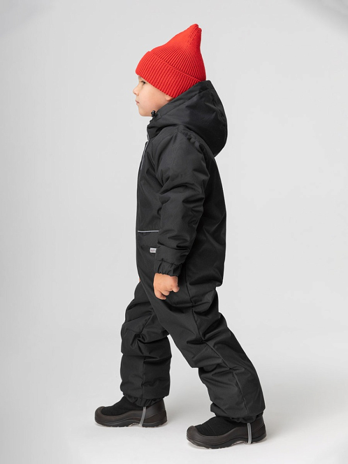 Комбинезон для детей дошкольного возраста. Комбинезон с подкладкой, прямого силуэта, с втачными рукавами, с притачными манжетами с внутренней резинкой. Подкладка: флис. Внутри комбинезона имеется эластичная лямка. Комбинезон с центральной застёжкой на тесьму - «молния» закрытая ветрозащитной планкой. Комбинезон с капюшоном со средней частью и с регулировкой по диаметру капюшона. На полочке располагаются два кармана закрытые клапаном. Состав: мембранная ткань 100% полиэстер, утеплитель Hetta micro 150 г/кв.м, подкладочный материал флис 100% полиэстер. Температурный режим от 0 до -15 градусов, в зависимости от индивидуального теплообмена. Мембрана Lokker Galaxy 5000/5000.