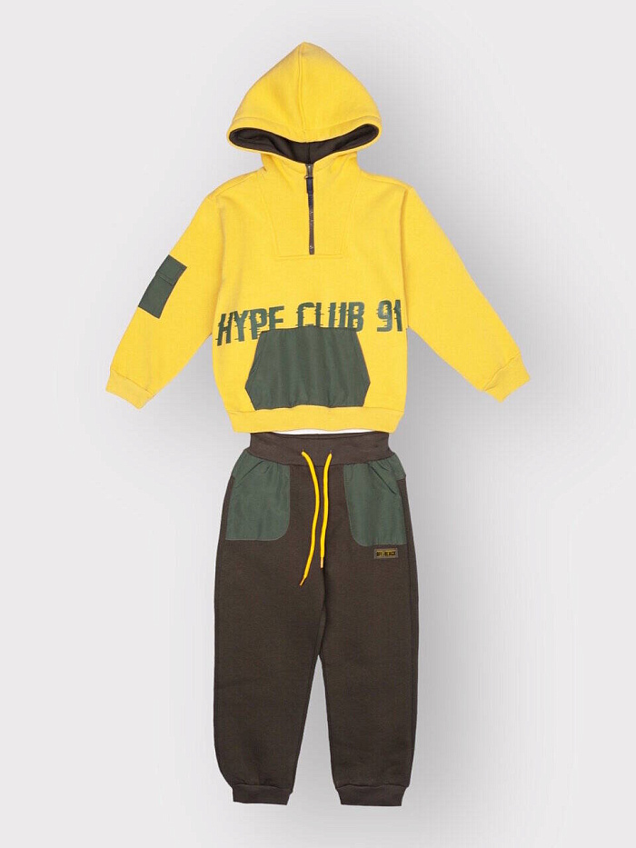 Комплект толстовка и брюки, цв. жёлтый/хаки, р. 8