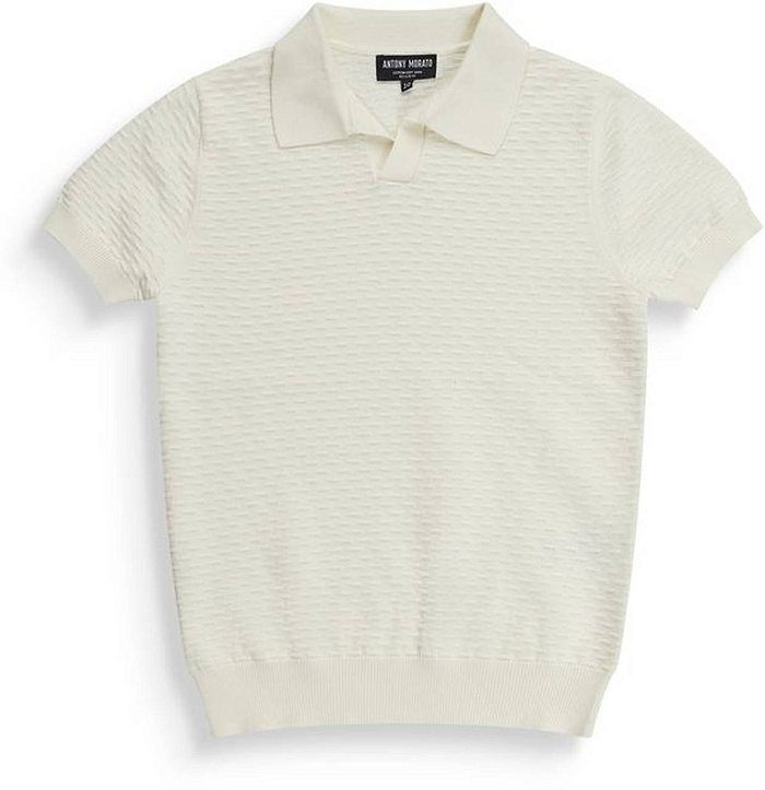 Пуловер для мальчика выполнен в светлом однотонном оттенке, который легко сочетается с различными элементами гардероба. Материал выглядит мягким и приятным на ощупь, имеет легкую фактуру с едва заметным рельефным узором по всей поверхности, что придает изделию аккуратный и современный вид. Классический крой с коротким рукавом обеспечивает свободу движений и комфорт при носке, а эластичная резинка по низу и на рукавах помогает пуловеру хорошо держать форму в течение дня. Воротник отложного типа создает аккуратный и опрятный образ, делая вещь подходящей как для повседневных прогулок, так и для более формальных случаев. Дизайн изделия отличается лаконичностью и универсальностью, что позволяет легко комбинировать его с брюками, джинсами или шортами. Мягкая и дышащая структура материала способствует комфортному микроклимату, особенно в теплое время года. Пуловер для мальчика не содержит лишних декоративных элементов, благодаря чему выглядит стильно и сдержанно.