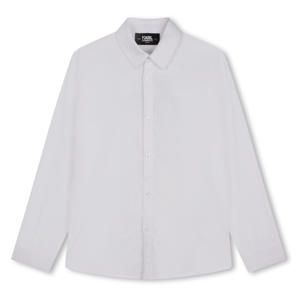 Рубашку с длинными рукавами от KARL LAGERFELD KIDS можно надеть с костюмом по особому случаю. На спине пришита бирка с логотипом. Модель выполнена из 100% хлопкового поплина.