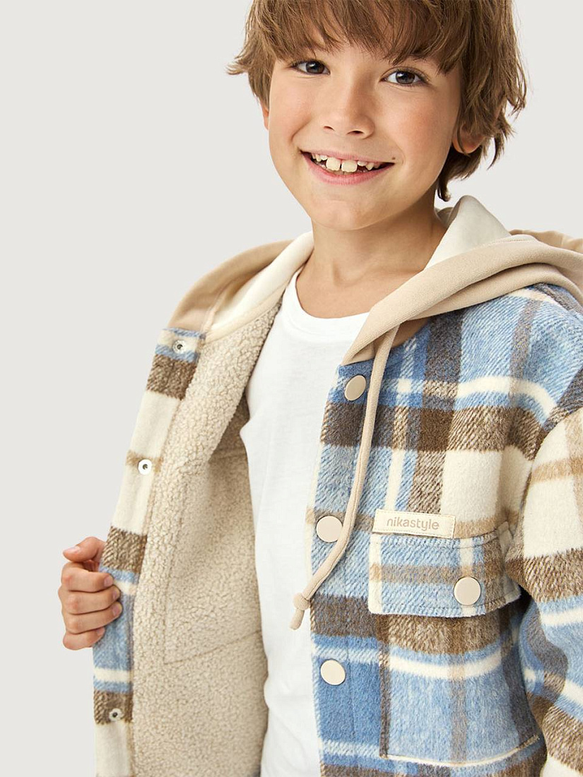 Куртка-рубашка КАМПУС в клетку из пальтовой ткани дублированной мехом. Пальтовая ткань с мягкой ворсистой фактурой, приятная на ощупь. Мех-барашек с изнаночной стороны обеспечивает защиту от холода и дарит ощущение тепла и уюта. Свободный прямой крой со спущенной линией плеча не сковывает движение и создает максимальный комфорт в носке. Функционал: - центральная застежка на кнопки, - накладные карманы с клапаном на кнопке. Мы все продумали до мелочей, поэтому у модели низ рукава с манжетой на кнопке, втачной капюшон из футера. Комфортная температура эксплуатации от +5°С до +15°С.