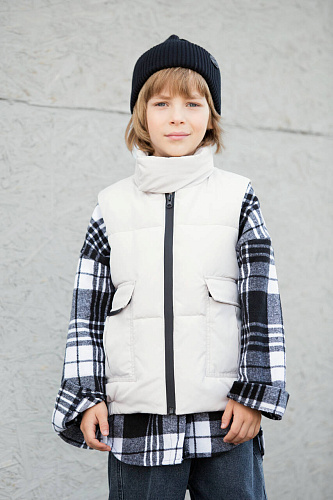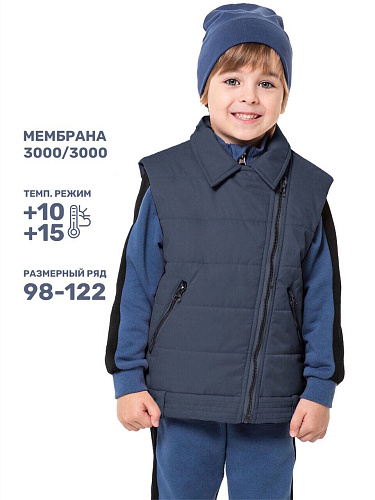 Жилет для мальчика. Детский весенний жилет для мальчика из курточной ткани с пропиткой DWR утеплен холлофайбером 150 г/м2. Подкладка из подкладочной ткани. Такая модель отлично подойдет на осень, весну и лето. Застежка центральная на разъёмную молнию. В боковых швах расположены карманы. Низ и проймы жилета обработаны окантовочной резинкой. Такая теплая, спортивная модель отлично подойдет для прогулок на улице, активных игр на свежем воздухе, путешествий, туризма и других видов спорта и отдыха на природе, так же ее можно одеть в школу и детский сад.