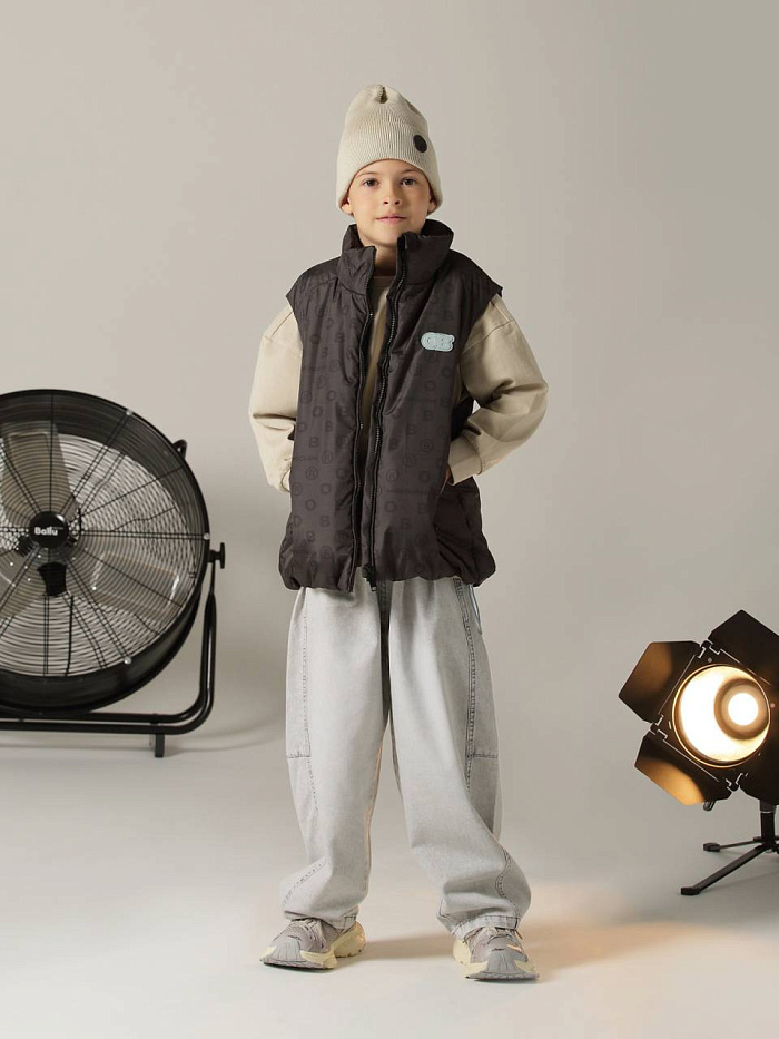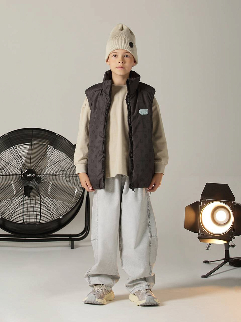 Утепленный жилет для мальчика изготовлен из красивой принтованной ткани с водоотталкивающей пропиткой обеспечивает защиту от дождя и влаги, сохраняя тепло и сухость. Утеплитель Термофин 150г. Прямой крой гарантирует свободу движений и универсальность под любую одежду. Высокий воротник-стойка защищает шею от ветра и холода, а застежка на молнию с внутренней ветрозащитной планкой и клапаном для защиты подбородка обеспечивает комфорт и дополнительную защиту от сквозняков. Логотип бренда на передней части изделия добавляет стиль и узнаваемость. Два глубоких кармана на молнии позволяют удобно размещать мелочи и согревать руки. Глубокая пройма создана для комфортного ношения худи или толстовки под жилеткой. Регулируемая кулиска со стопперами по низу позволяет подогнать силуэт под температуру и активность ребенка, удерживая тепло внутри. Жилет утепленная для мальчика идеально сочетает функциональность и стиль, подходит для повседневной носки и активных прогулок. Температурный режим: +5...+15 °C