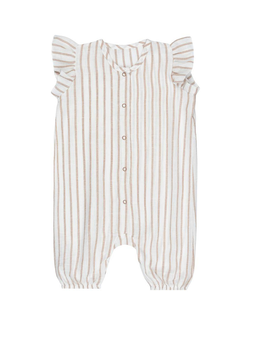 Песочник с крылышками для девочки выполнен из мягкого материала, который приятен к телу и обеспечивает комфорт в течение всего дня. Дизайн изделия отличается вертикальными полосками спокойного оттенка на светлом фоне, что визуально удлиняет силуэт и делает образ более нежным и аккуратным. Крылышки на плечах добавляют романтичности и оригинальности, подчеркивая индивидуальность маленькой модницы. Застежка на пуговицы по всей длине песочника облегчает процесс переодевания и ухода за малышкой. Эластичные резинки по низу штанин обеспечивают хорошую посадку и не стесняют движения ребенка. Натуральная ткань приятна на ощупь, обладает хорошей воздухопроницаемостью и подходит для чувствительной кожи. Простой и в то же время элегантный узор отлично сочетается с другими элементами детского гардероба. Песочник с крылышками для девочки станет отличным выбором для прогулок, дома и праздничных событий.