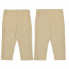 Брюки для мальчика выполнены в светло-бежевом цвете, который легко сочетается с различными элементами гардероба. Классический крой обеспечивает удобную посадку и свободу движений, что особенно важно для активных детей. На поясе предусмотрены шлевки для ремня, что позволяет регулировать посадку по фигуре. Спереди брюки застегиваются на пуговицу и молнию, что делает их практичными для повседневного использования. С обеих сторон расположены вместительные косые карманы, в которые удобно положить мелкие вещи. Сзади имеется один аккуратный прорезной карман, добавляющий изделию лаконичности и завершенности. Материал брюк визуально напоминает гладкую, износостойкую ткань, хорошо подходящую для ежедневной носки и поддержания аккуратного внешнего вида.