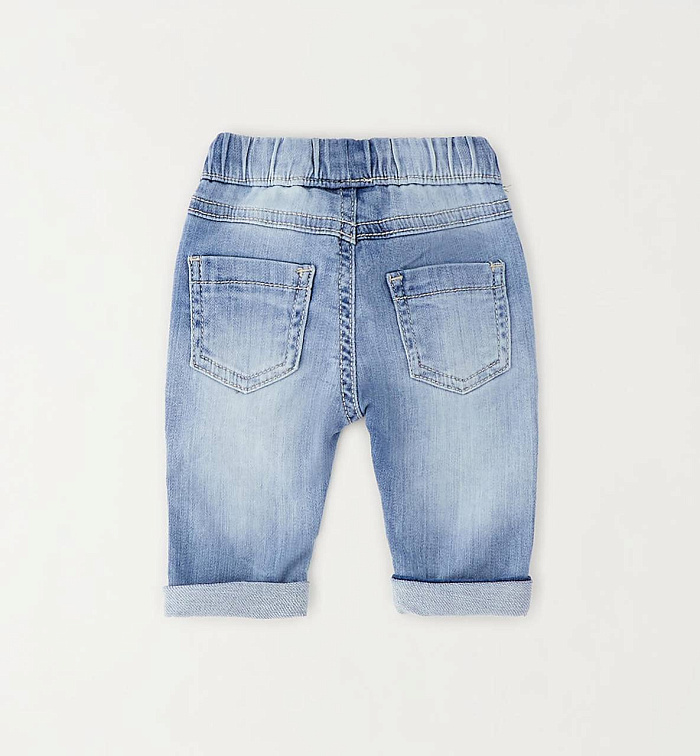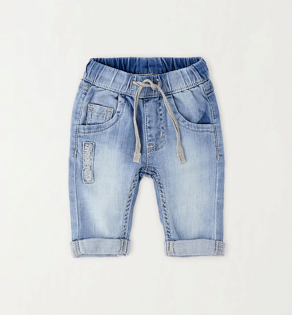 Детские джинсы iDO для детей от 12 до 24 месяцев из очень мягкого эластичного хлопкового денима. Эластичный пояс со шнурком. Подвороты.