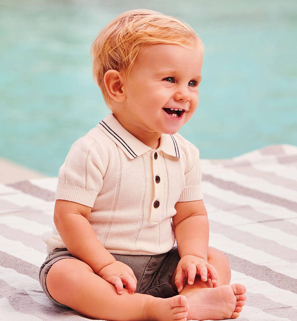 Детский свитер Minibanda из 100% хлопкового трикотажа. В стиле поло с застежкой на пуговицы спереди.