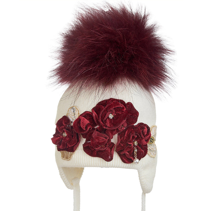 Шапка для девочки с бархатными цветами/стразы, р. 40-42