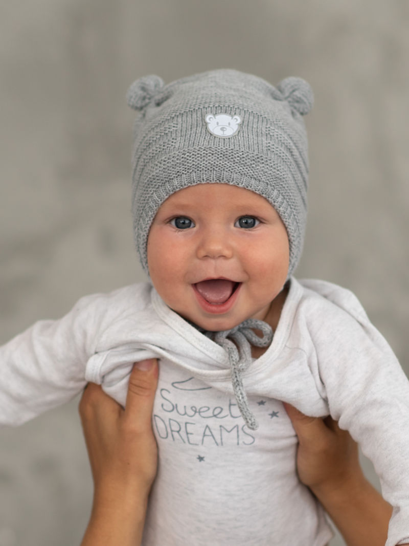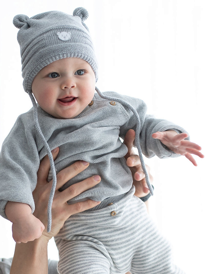 Мягкая, двойная шапочка с забавными "ушками" на макушке. Верхний слой связан из полушерстяной мериносовой пряжи, нижний изготовлен из трикотажного полотна и полностью пришит. Аккуратные удобные завязки без узлов и наконечников. Спереди лейбл - мишка. Подойдет на температуру от -5 до -10 (с капюшоном). Рекомендации по уходу: машинная деликатная стирка при температуре 30 градусов.