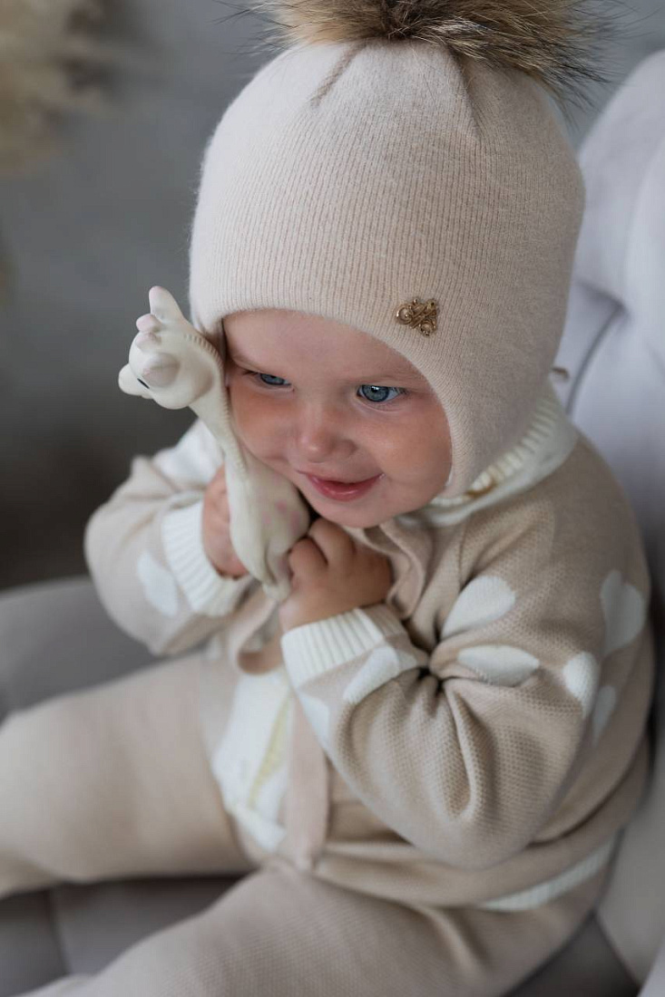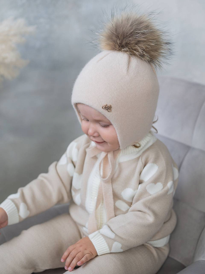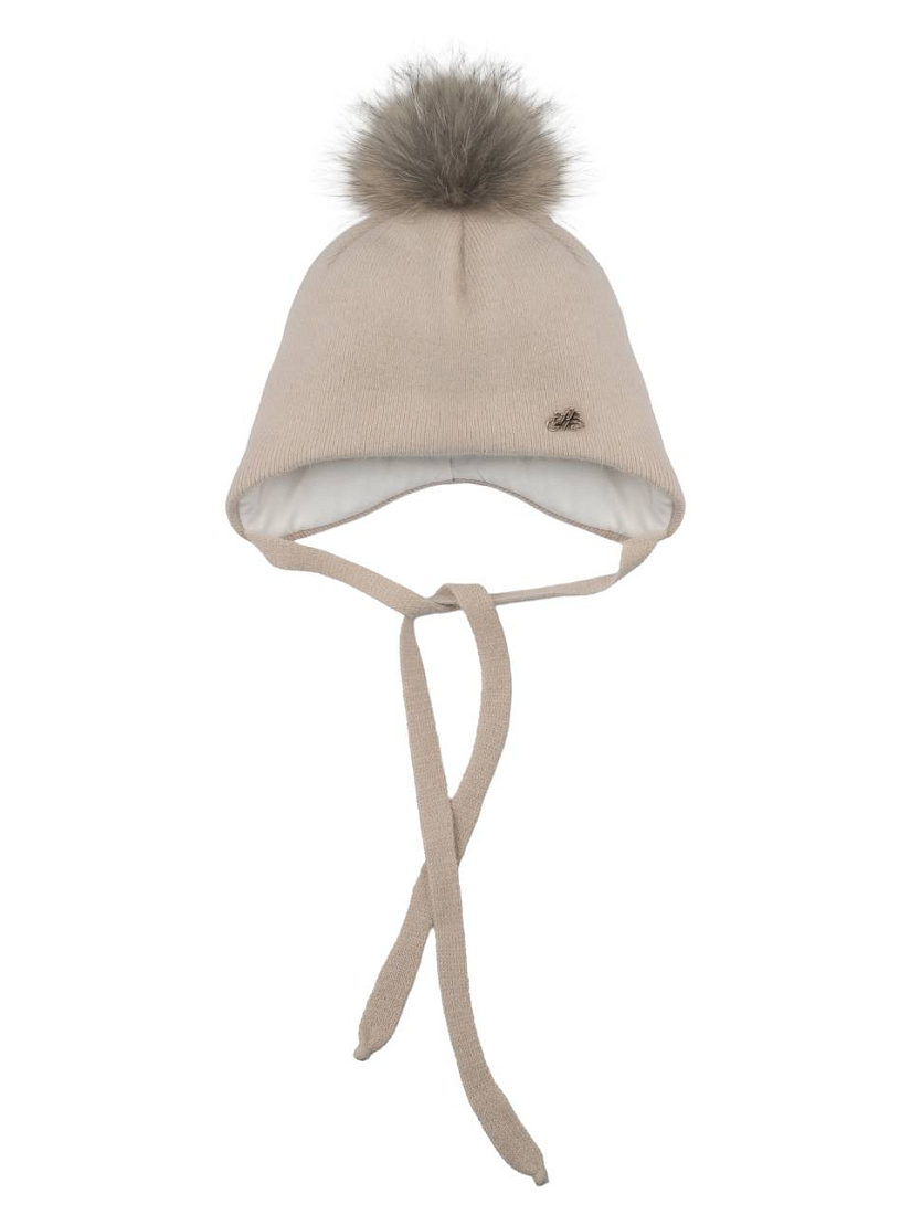Шапка зимн. с утепл.мех. помпоном на завязках, цв. бежевый
